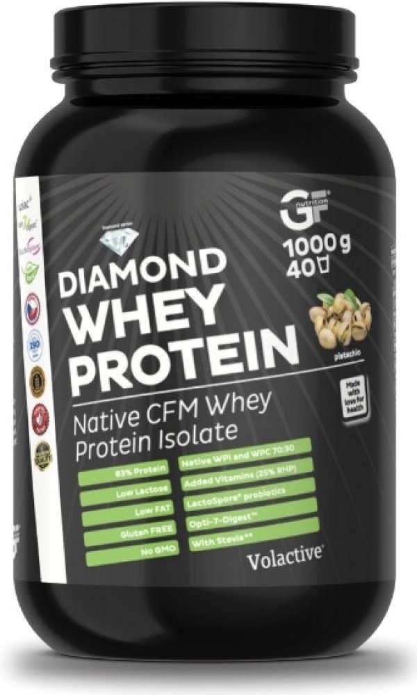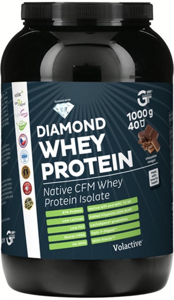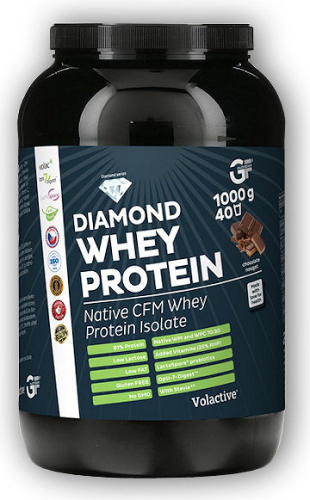 Obsah bílkovin se v závislosti na příchuti pohybuje v rozmezí 81-83% bílkovin. Základem Diamod Whey Proteinu je výběrová a prvotřídní bílkovina od Britské společnosti Volac a to jak v podobě izolátu, tak i menšinově zastoupeného koncentrátu. Obě bílkovinné frakce jsou vyrobeny tzv. CFM metodou tedy metodou Cross Flow Microfiltration.
