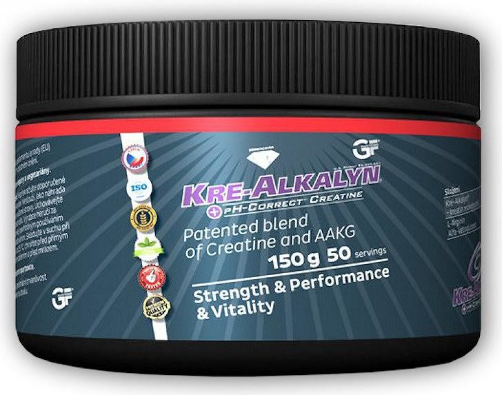 Patentovaná forma kreatin monohydrátu s vyváženým pH vyšší než 12 v sypké formě, která se vyznačuje enormně vysokou stabilitou v trávicím traktu a vynikající vstřebatelností v organismu. Běžný kreatin monohydrát má pH nižší než 7 čímž se během procesu trávení částečně přeměňuje na odpadní látky (kreatinin a další), které tělo vylučuje prostřednictvím ledvin z těla ven. Patentovaná forma Kre-Alkaly...