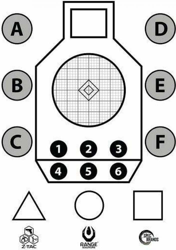 Základem tohoto terče je velmi populární silueta FBI, která umožňuje uskutečňovat množství testů a soutěží - technických i taktických. Čísla a kruhy umožňují rozvíjet schopnost správně reagovat. Terč se osvědčí při výcviku na různé vzdálenosti při střelbě z pistole, stejně jako při karabině.