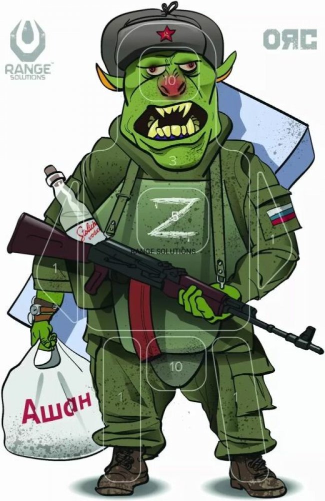 Orc Shooting Target, určený pro rekreační střelbu. Představují vtipnou karikaturu ruského orkského vojáka.