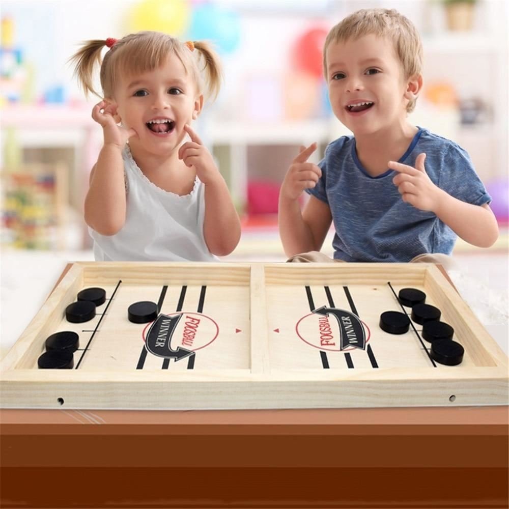 Zahrajte si doma tento vzdušný hokej a užijte si s přáteli spoustu zábavy. Hra je koncipována tak, aby si s ní mohli hrát jak děti, tak i dospělí. Můžete například uspořádat rodinný turnaj. Kdo nastřílí všechny puky na soupeřovu plochu, vyhrává.