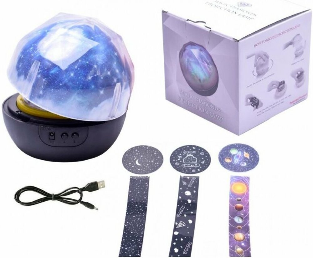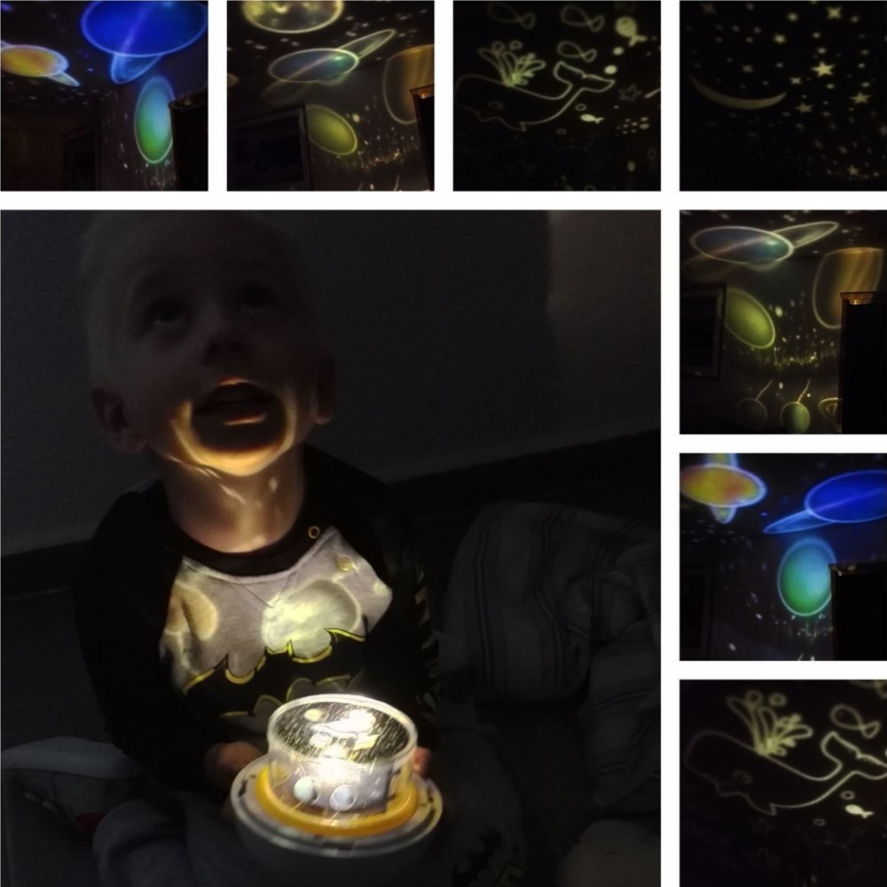 Promítnete si vesmír, hvězdy, rybičky nebo dort s přáním „happy birthday“? Je jen na Vás, kterou „oblohu“ si vyberete. Součástí balení jsou vyměnitelné pásky, díky kterým jednoduše změníte motiv, s přáním krásných narozenin můžete například překvapit oslavence. S motivem noční oblohy, nebo planet se bude klidně usínat Vašim nejmenším.