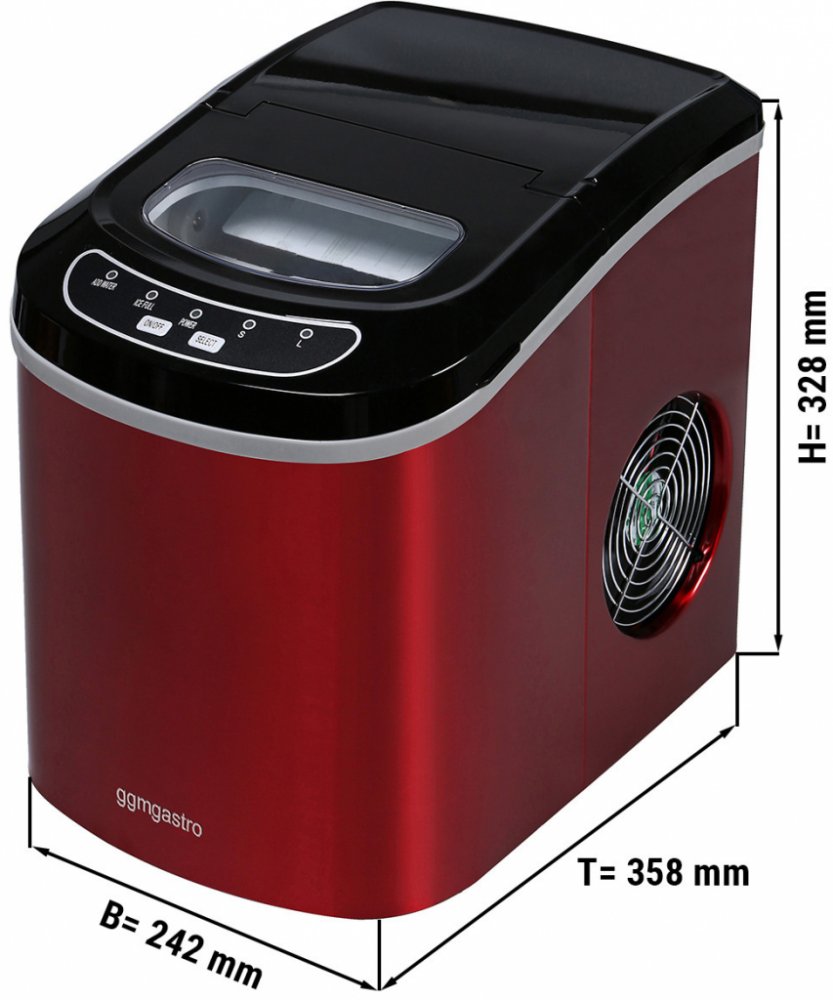 - Snadné ovládání: naplňte nádržku na vodu, zvolte velikost kostek ledu