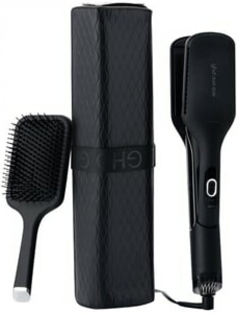 dárková sada ghd duet style™. Objevte tuto sváteční sezónu třpytivou ledovou krajinu a zútulněte si ji okouzlujícími dny dobrých vlasů. Vytvořte si dokonalou sváteční fantazii s dárkovou sadou ghd duet style™. Dárková sada obsahuje profesionální horkovzdušný styler 2 v 1 ghd duet style™, lopatkový kartáč ghd the all-rounder a pouzdro s tepelnou ochranou.* Rozbalte si to všechno v této sváteční sezóně. Horkovzdušný styler ghd professional 2 v 1: SUŠENÍ A STYLING JEN JEDNÍM NÁSTROJEM - Revoluční technologie Air-Fusion™: jedinečná kombinace pokročilé vnitřní aerodynamiky se čtyřmi inteligentními destičkami v přizpůsobené stylingové komoře ghd. Poskytuje mimořádně koncentrovaný proud vzduchu prostřednictvím odborně navržené vzduchové mřížky, která pracuje v součinnosti s inteligentními destičkami s nízkou teplotou pro úpravu vlasů. Pro rychlejší styling a nevídané výsledky účesu,** a to pouze s jedním přístrojem. VYNIKAJÍCÍ NÍZKOTEPLOTNÍ STYLING - Inteligentní senzory Infinity: reagují na potřeby vašich vlasů a udržují optimální nízkou teplotu stylingu od kořínků ke konečkům pro vynikající vysoušecí výkon při zachování přirozené vlhkosti vlasů.*** Od mokrých vlasů po hladký styling bez poškození teplem,**** bez šumění a zápachu pálení, pro nebývale krásné a hladké výsledky vlasů až po dobu 48 hodin.** LUXUSNÍ VÝSLEDKY KAŽDÝ DEN - Exkluzivní režim Shine Shot™ pouze pro suché vlasy: promění se ve styler ghd s optimální teplotou stylingu 185 °C bez přístupu vzduchu, který okamžitě zajistí vlasy bez krepatění,** 2x více lesku a 3,5x větší zkrocení.*** STYLING BEZ NÁMAHY - Pokročilé destičky Easy-glide s ultra lesklou povrchovou úpravou: poskytují neuvěřitelně hladký skluz bez tření,** pro styling bez námahy. TICHÝ ZÁŽITEK Z ÚČESU - Přizpůsobený akustický systém: zajišťuje nižší hladinu hluku** pro zážitek z úpravy vlasů doma nebo v salonu. STYLING ŠETRNÝ K ŽIVOTNÍMU PROSTŘEDÍ - Navržen s ohledem na nejvyšší úroveň výkonu, účinnosti a estetiky: naše jedinečná aerodynamika šetrná k životnímu prostředí také minimalizuje plýtvání energií a zajišťuje až o 45 % nižší spotřebu energie.† Klidná mysl - Režim spánku: automaticky se vypne, pokud se 30 minut nepoužívá. Ochranný kryt desky. Profesionální 2,7 m dlouhý kabel. Záruka 2 roky. Pouzdro s tepelnou ochranou ghd: pro bezpečné uložení styleru během úpravy * Vyrobeno v Číně. Kartáč ghd the all-rounder paddle brush: Univerzální kartáč pro rozčesávání, rozčesávání a úpravu středně dlouhých až dlouhých vlasů. Široká plocha umožňuje vysoušet velké úseky vlasů do hladka a do hladka. *Pouzdro s tepelnou ochranou je vhodné pouze pro použití s výrobky ghd. **Spotřebitelský test, 142 žen, červen 2021. ***Srovnání s přirozeně vysušenými vlasy, závisí na použití koncovým uživatelem. ****Nezjištěno žádné tepelné poškození vlasů po 100 cyklech 4 průchodů v režimu od mokrých k upraveným vlasům ve srovnání s přirozeně vysušenými vlasy. †Měřeno v režimu od mokrých k upraveným vlasům ve srovnání s fénem ghd s kartáčem, v závislosti na použití koncovým uživatelem.
