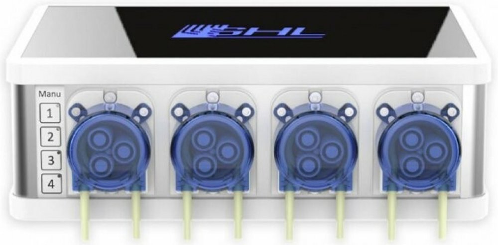 GHL Doser 2.1 Slave je vysoce kvalitní dávkovací zařízení s 4 přesnými pumpami, navržené pro automatické dávkování kapalin ve vašem akváriu – od hnojiv, přes stopové prvky až po Balling soli, krmiva či doplňování odpařené vody.
