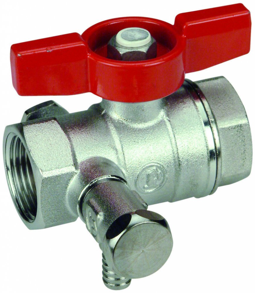 Kulový kohout s vnitřními závity, vypouštěním a ovládací vrtulkou - červená, chromovaný.