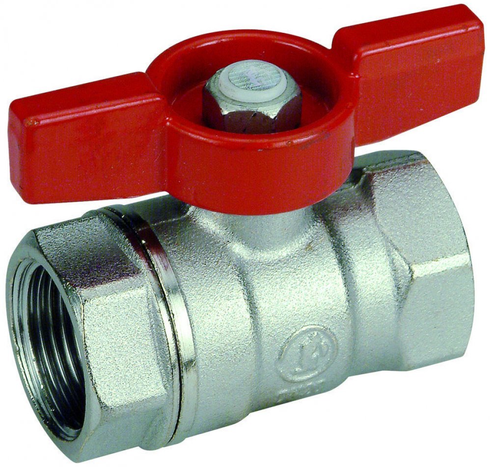 Kulový kohout s vnitřními závity a ovládací vrtulkou - červená, chromovaný.