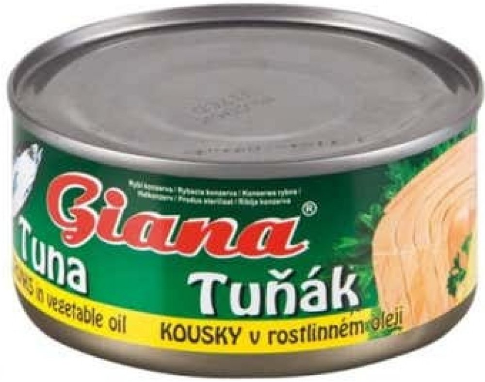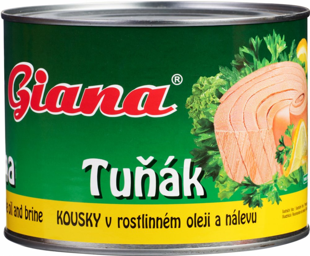 ZÁKONNÝ NÁZEV POTRAVINYTuňák kousky v rostlinném olejiSLOŽENÍTUŇÁK pruhovaný (Katsuwonus pelamis),SÓJOVÝ OLEJ, Pitná voda, Jedlá sůlALERGENYRyby a výrobky z nich,Sójové boby a výrobky z nichVÝŽIVOVÉ ÚDAJE/JEDNOTKAenergetická hodnota 703kJ/168kcal, Tuky 6,1g, z toho nasycené mastné kyseliny 2,1g, Sacharidy 1,8g, z toho cukry 0,2g, Bílkoviny 26g, Sůl 1gVÝŽIVOVÉ ÚDAJE/PORCE