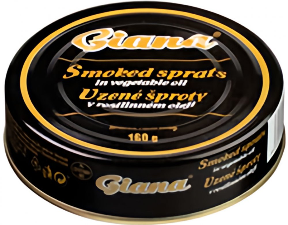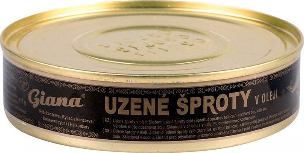 ZÁKONNÝ NÁZEV POTRAVINYŠproty uzené v rostlinném olejiSLOŽENÍŠPROTY uzené obecné (Sprattus sprattus)- celé 70%, řepkový olej 28,5%, jedlá sůlALERGENYRyby a výrobky z nich, MŮŽE OBSAHOVAT: Neuvádí seVÝŽIVOVÉ ÚDAJE/JEDNOTKAEnergetická hodnota 1130kJ/272kcal, Tuky 21,4g, z toho nasycené mastné kyseliny 4g, Sacharidy 0g, z toho cukry 0g, Bílkoviny 19,9g, Sůl 1,80gVÝŽIVOVÉ ÚDAJE/PORCEneuvádí seHMOTNOST/OBJEMHmotnost: 160 g, Hmotnost pevného podílu: 112 g.PŮVODLotyšskoVÝROBCEVyrobeno v Lotyšsku.VĚDECKÝ NÁZEV-LATINAProdávající: GASTON, s.r.o., Kvítková 4703, 760 01 Zlín, ČRFAOSprattus sprattusZPŮSOB PRODUKCEFAO 27 IIId Baltské moře.ZPŮSOB ODLOVUProdukt mořského rybolovuZPŮSOB ÚPRAVYVlečné sítě - Pelagická párová vlečná síť.VETERINÁRNÍ ČÍSLOSterilováno