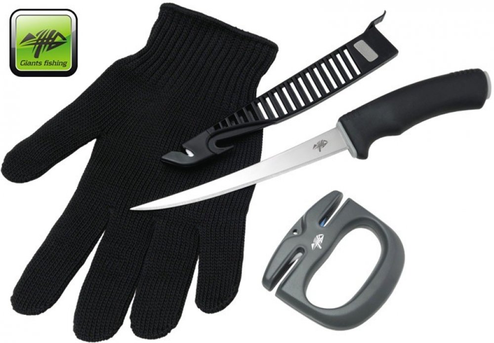 GIANTS FISHING Sada nůž, rukavice a brousek Combo Filet