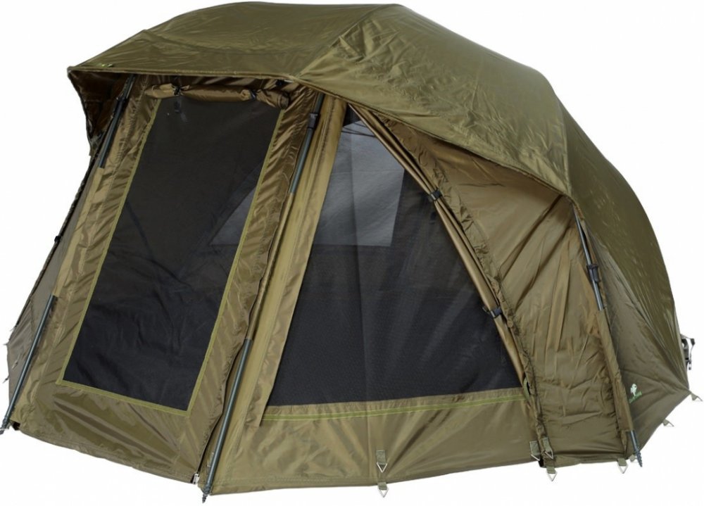 Ventilace a úchyty: Model 2019 je vybaven dvěma zadními velkými ventilačními okny, což zajišťuje lepší cirkulaci vzduchu. Dvě přední pásky na suchý zip s gumovými úchyty slouží k bezpečnému držení prutů. Odnímatelná podlaha: Praktická úprava označení odnímatelné podlahy gumovým logem vstupu usnadňuje snadné a rychlé osazení podlážky v přístřešku. Konstrukce: Deštníková konstrukce je velmi stabilní a díky podpěrným hladkým tyčím si zachovává vysokou stabilitu i při nepříznivém počasí. Materiál: Použitý voděodolný materiál nejvyšší kvality odolá až 5 000 mm srážek a je 100% nepromokavý. Páskou podlepené švy zajišťují maximální ochranu před vlhkostí. Ukotvení: Přístřešek je navržen s ukotvením na zavrtávací kolíky v osmi bodech, které jsou součástí balení. Podpěrné tyče: Součástí jsou čtyři podpěrné teleskopické tyče – dvě delší (90-150 cm) a dvě kratší (60-100 cm) – se zavrtávací špičkou. Přední část a okna: Přední vchodová část a dvě boční okna jsou odvětrávaná a lze je snadno uzavřít pro větší komfort a ochranu. Přepravní a skladovací řešení: Přístřešek je dodáván s PU odnímatelnou podlážkou, která se uchytí na suché zipy, 16 ks zavrtávacích kolíků a praktickou přepravní taškou. Rozměry a hmotnost: