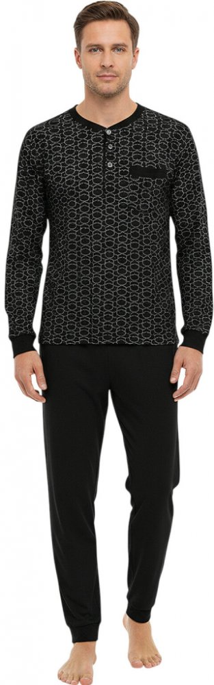 Elegantní pánské pyžamo s dlouhým rukávem a dlouhými nohavicemi je určeno pro muže, kteří si potrpí na komfort a kvalitu. Horní díl má rozpínání na 3 knoflíčky a spodní díl je v pase do praktické gumy. Pyžamo má velmi pěkný design - kombinuje decentní barvy a klade důraz na detail i pohodlí. Luxusní pánské pyžamo z dílny holandského dodavatele Dlouhý rukáv a dlouhé nohavice Zakončení do praktickýc...