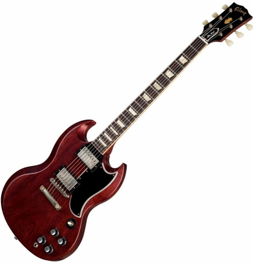 Elektrická kytara ze série Gibson 1961 Les Paul SG Standard Reissue. Gibson Custom Shop představuje vrchol řemeslného zpracování a vynikající kvality. Každý nástroj je vyroben s maximálním důrazem na přesnost a detail.