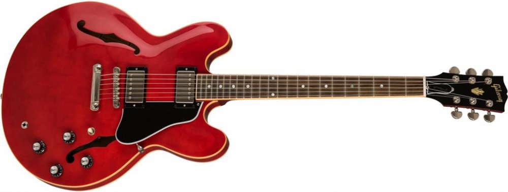 Semiakustická kytara Pololubové elektrické kytary Gibson ES-335 Figured osloví svým zpracováním opravdové hudební fajnšmekry. Designem, zvukem i celkovým feelem ctí dlouhou tradici pololubových kytar Gibson ES-335 a zároveň přináší vítaná vylepšení v rámci herního komfortu. Tělo kytary ES-335 Figured Sixties Cherry je zhotoveno z vrstveného javoru a topolu. Vrchní dýha z figurovaného javoru kvality AAA a barevná úprava Sixties Cherry poskytují nástroji exkluzivní vzhled. Javorový středový blok zvyšuje pevnost pololubové konstrukce a odolnost proti “vazbení”. Zvukové kvality nástroje a skvělý sustain podporuje žebrování ze smrku Adirondack a tenká vrstva laku z nitrocelulózy, která umožňuje dřevu dýchat. K mahagonovému krku s pohodlným Rounded “C” profilem je přilepen palisandrový hmatník osazený dvaadvaceti pražci velikosti Medium Jumbo. Orientaci na hmatníku usnadňují polohové bloky z imitace perleti. Zvuk humbuckerů Calibrated T-Type vynikne v široké škále hudebním žánrů - od jazzu přes country po blues/rock. Humbuckery jsou ručně pájené k potenciometrům hlasitosti, tónové clony a “orange drop” kondenzátorům. Mezi snímači lze přepínat třípolohovým switchem. Stabilitu ladění a dobrý sustain zaručuje uchycení strun přes nultý pražec z materiálu Graphtech v mechanikách Vintage Deluxe s kolíčky Keystone a kobylce ABR-1 TOM a struníku. Stylové zpracování podtrhuje černý pětivrstvý pickguard, oboustranná lemovka těla a niklový hardware. Kytara je dodávána v kufru spolu se sadou příslušenství.