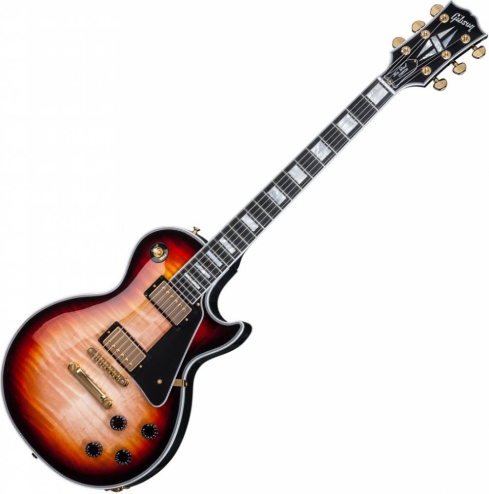 Elektrická kytara ze série Les Paul Custom figured Top modelové řady Custom Shop. Tělo kytary je vyrobeno z mahagonového dřeva s jemně klenutou vrchní deskou ze dvou kusů javoru s nitrocelulózovým lakováním. Lepený mahagonový krk typu Medium C-Shape je osazen hmatníkem z materiálu Richlite s 22 Medium Jumbo pražci. Radius hmatníku: 12", menzura: 24,75" (62,865 cm), nultý pražec vyrobený z materiál...