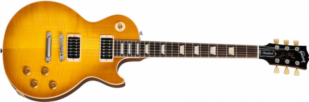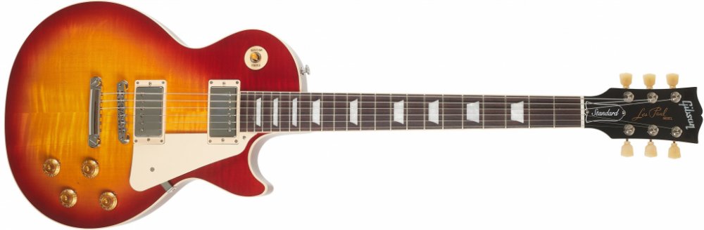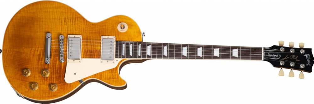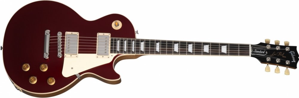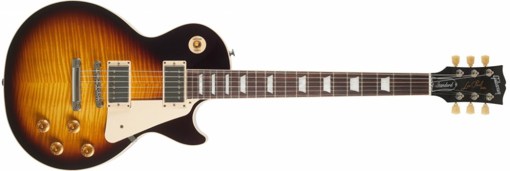 Elektrická kytara Je jen málo elektrických kytar, o kterých lze říci, že jsou klasické či legendární tak, jako o modelu Les Paul od amerického výrobce Gibson. Elektrické kytary z řady Les Paul Standard ‘50s se vrací k designu z dob zlaté éry rock‘ n‘ rollu, tj. plně ctí originály bez úliteb v podobě odlehčeného materiálu nebo „snadnějšího“ profilu krku. Jednoduše Gibson Les Paul v autentické verzi. Tělo kytary je vyrobeno z mahagonu a javorového topu. Tenká povrchová úprava v podobě laku z nitrocelulózy umožňuje dřevu kytary dýchat a zlepšuje zvukové kvality nástroje. K mahagonovému krku s autentickým zakulaceným profilem Vintage 50s je přilepen palisandrový hmatník osazený dvaadvaceti pražci velikosti Medium Jumbo. Orientaci po jeho ploše usnadňují polohové bloky z imitace perleti ve tvaru lichoběžníku (trapezoid). O zvuk nástroje se starají dva humbuckery Burstbucker s Alnico II magnety. Jejich sevřených zvuk v basech, komplexní středy a krásně znějící výšky si prostě zamilujete. Není divu, tyto snímače byly vyrobeny s jasným cílem přiblížit se a rozvinout zvuk legendárních vintage modelů PAF. Ke zvukovým korekcím slouží dva potenciometry hlasitosti, tónové clony a třípolohový páčkový přepínač snímačů. Stabilní ladění zaručuje uchycení strun přes kobylku ABR 1 Tune-O-Matic ve stop baru (struníku), na druhé straně přes nultý pražec z materiálu Graph Tech v ladících mechanikách Vintage Deluxe. Stylový design nástroje podtrhuje niklový hardware a světlý pickguard. Kytara je dodávána v kufru spolu se sadou příslušenství.