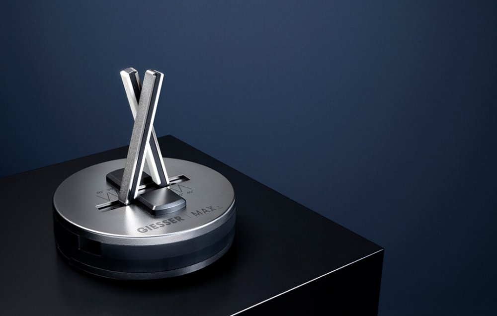 Self Adjusting Function (SAF): pružinou řízené brousky se automaticky přizpůsobí tvaru čepele — výsledkem je vždy rovnoměrně nabroušený nůž.