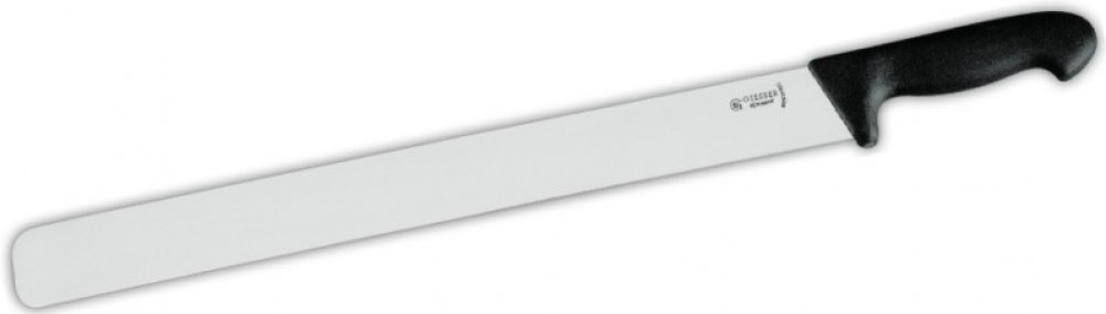 Nůž z vysoce kvalitní chrom-molybdenové oceli. Vakuově kalená čepel dosahuje tvrdosti 56-57 na stupnici Rockwella a je odolná proti korozi. Ergonomická rukojeť z neklouzavého plastu umožňuje snadnou a pohodlnou manipulaci. Ochranný kryt snižuje riziko sklouznutí ruky při práci. Nůž se dá mýt v myčce, pro optimální stav čepele ale doporučujeme ruční čištění. GIESSER je světový lídr ve výrobě nožů a příslušenství pro potravinářský průmysl a gastronomii. Produkty německé společnosti se vyznačují vynikajícím zpracováním za použití prvotřídních materiálů. Materiál: nerez/ plast Délka čepele: 36, 45 cm Typ: kovaný
