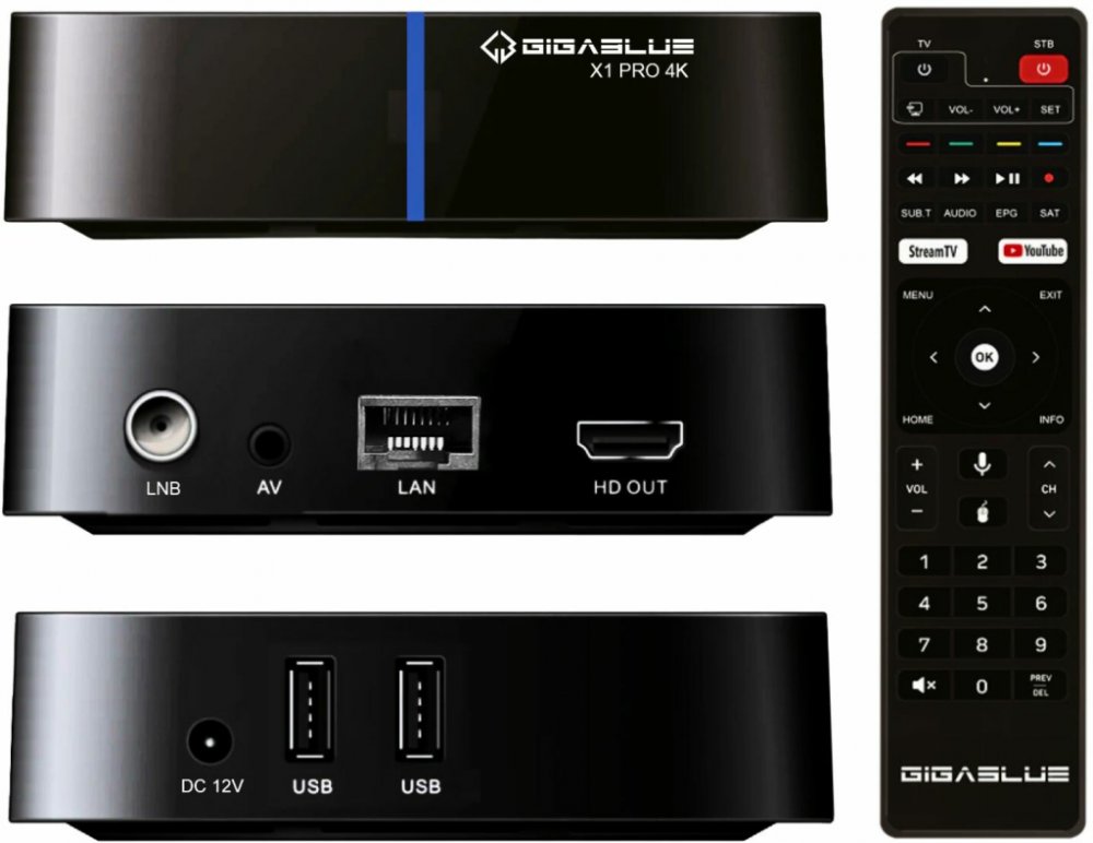 Přečtěte si naši detailní recenzi na Gigablue X1 PRO 4K .