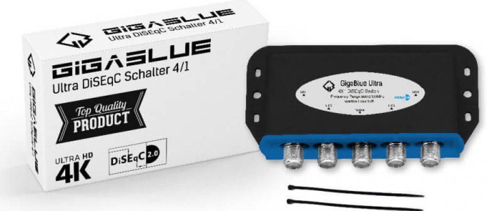 1x přepínač GigaBlue Ultra DiSEqC 4/1 s pouzdrem odolným proti povětrnostním vlivům