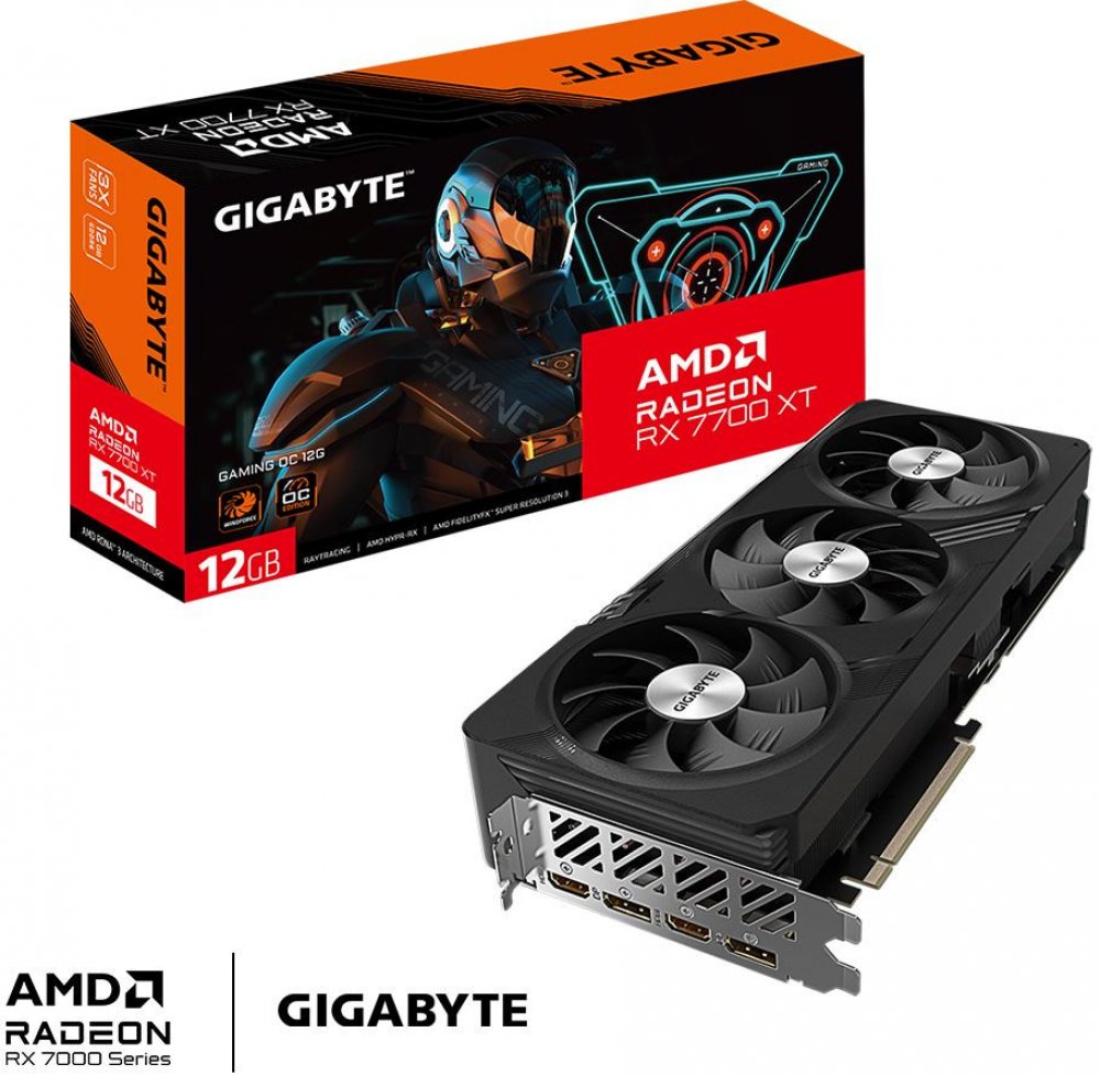 Grafická karta Gigabyte Radeon RX 7700 XT GAMING OC 12G perfektní pro hráče Gigabyte Radeon RX 7700 XT GAMING OC 12 je grafická karta pro herní nadšence! Zažijte mimořádný výkon, vizualizaci a efektivitu při hraní her a streamování s grafikou AMD Radeon RX 7700 XT poháněnou grafickou kartou AMD Radeon RX 7700 XT. AMD RDNA 3. Ponořte se do zážitků nové generace na pokročilých vysokofrekvenčních mon...