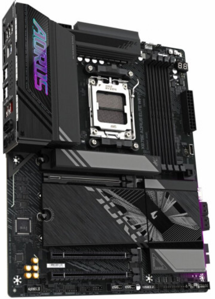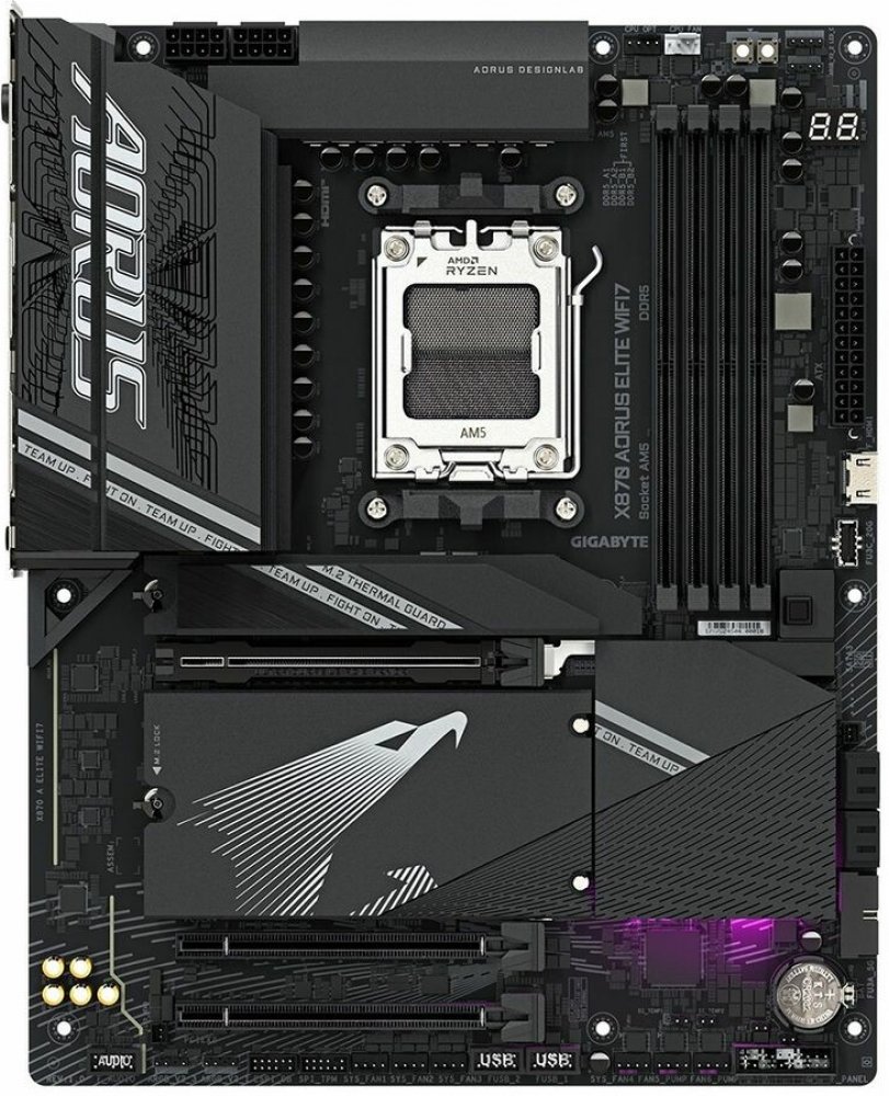 Gigabyte AORUS ELITE X870E WiFi 7 je výkonná základní deska formátu ATX navržená pro náročné uživatele, hráče i tvůrce obsahu. Osazena čipsetem AMD X870E, podporuje procesory AMD Ryzen 7000 pro socket AM5 a moderní paměti DDR5 s taktem až 8000 MHz (OC). Díky výkonné napájecí kaskádě s 16+2+2 fázemi poskytuje vysokou stabilitu i při přetaktování.