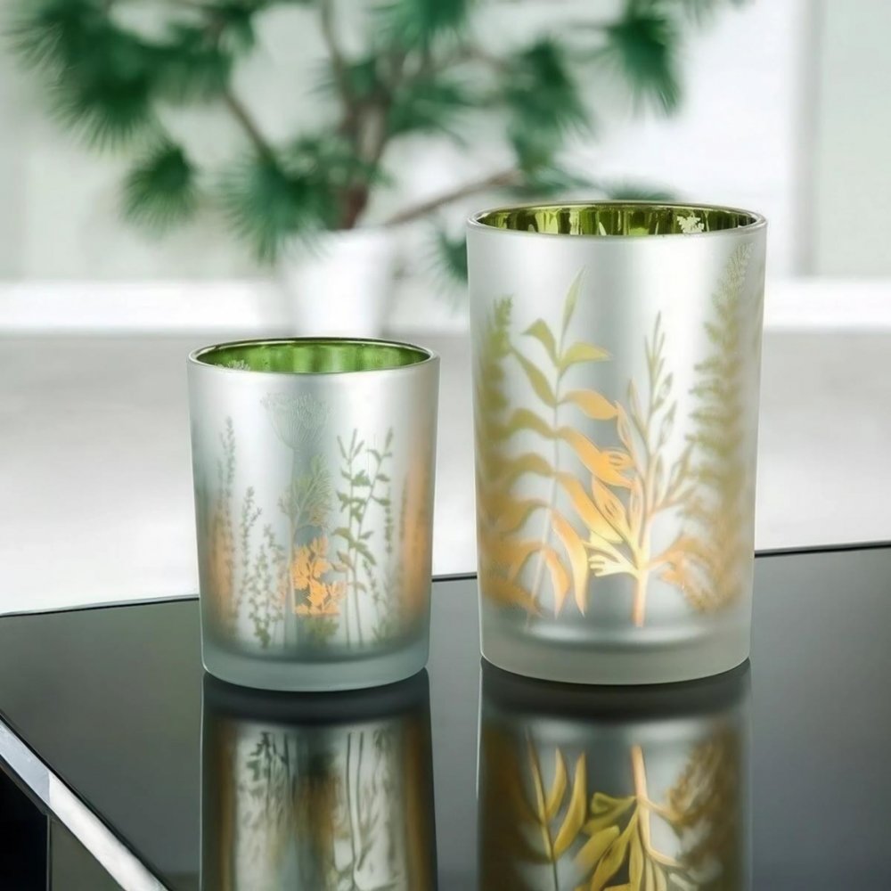 Skleněný svícen v jemně zelených odstínech zdobený motivem různých druhů trav, je elegantním a přírodním doplňkem pro každý interiér. Jemný matný povrch zvenčí v kombinaci s živým zeleným odstínem uvnitř vytváří zajímavý kontrast, který přitahuje pozornost.