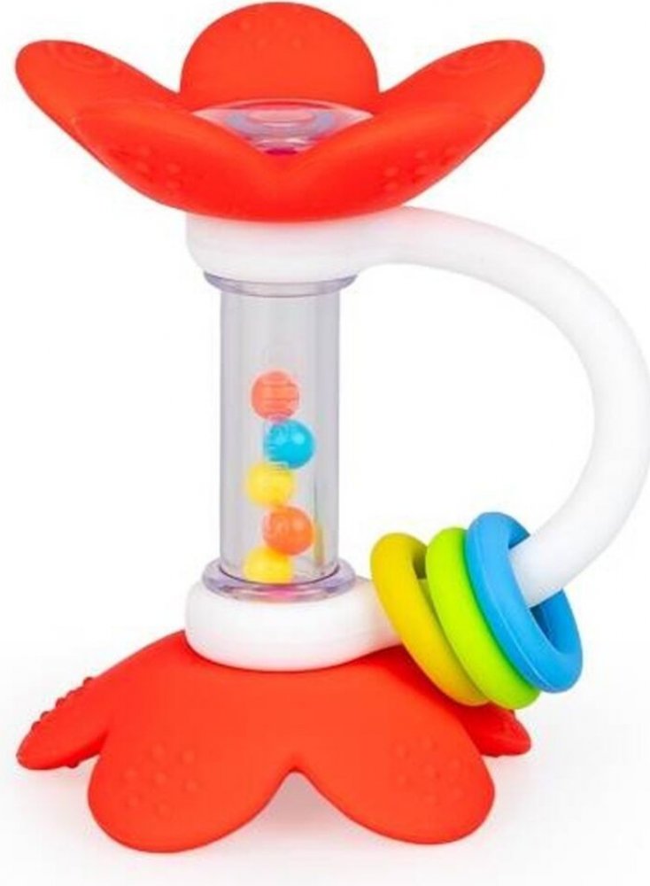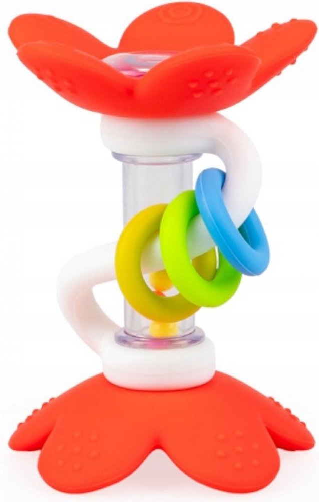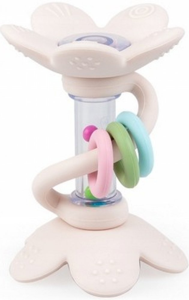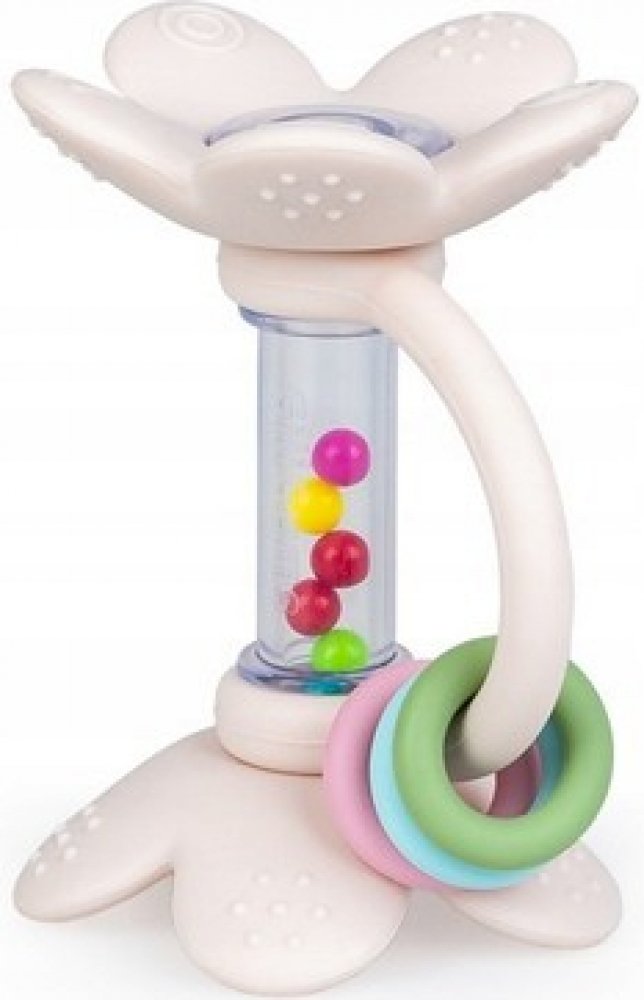 Chrastítko je zdobeno silikonovými kytičkami, které příjemně naladí vaše miminko svým veselým zvukem! Hračka je kromě barevných korálků vybavena také pohyblivými obručemi pro přesun a praktickým madlem, které usnadňuje držení hračky. Díky výstupkům na okvětních lístcích lze kytičky použít jako kousátko, přinášející úlevu bolavým dásním prořezávajícího se miminka.