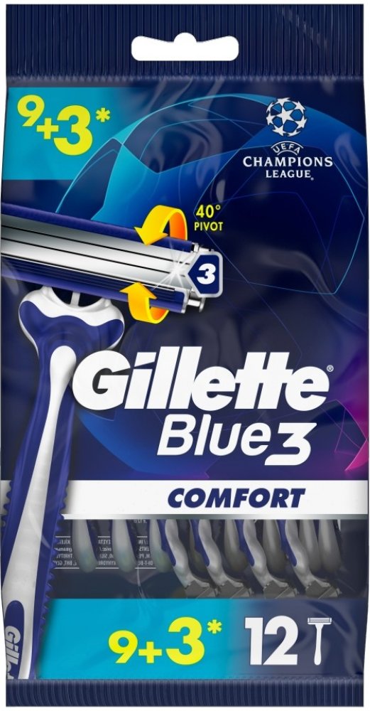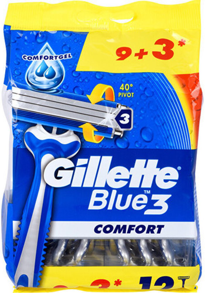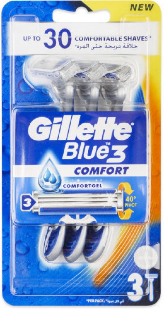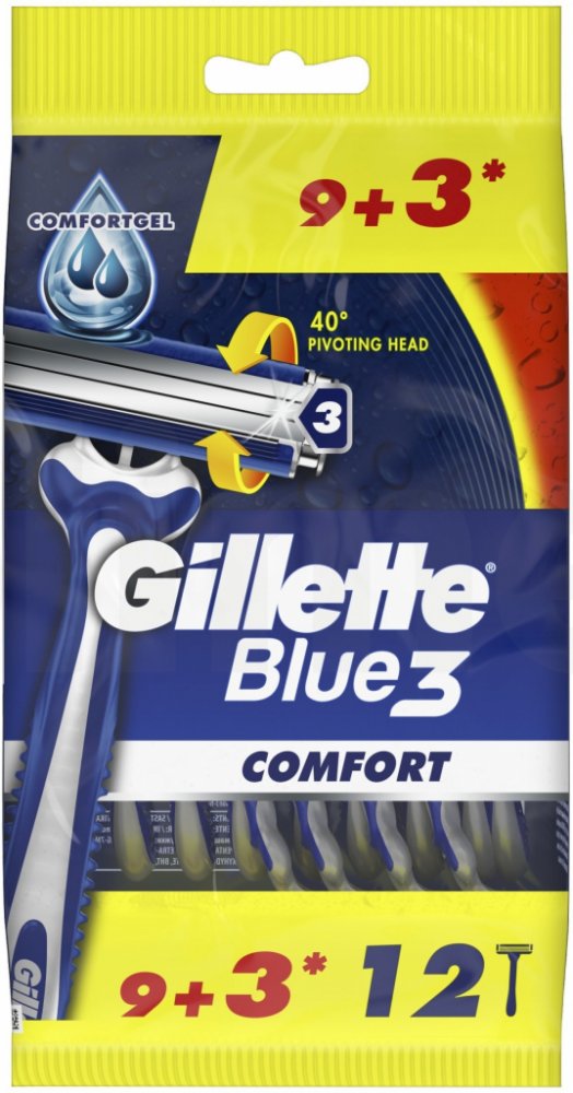 Pánská jednorázová holítka Blue3 se 3 chromovanými břity citlivými k pokožce a výkyvné hlavě, která se lehce přizpůsobuje konturám obličeje. Vylepšený zvlhčující pásek s technologií Comfortgel, který se aktivuje v kontaktu s vodou, zajišťuje maximální komfort. Holítko má rukojeť z protiskluzové pryže, takže umožňuje skvělou kontrolu a ovladatelnost.