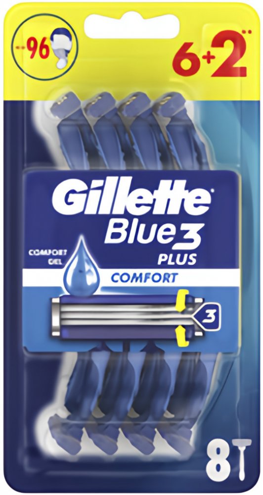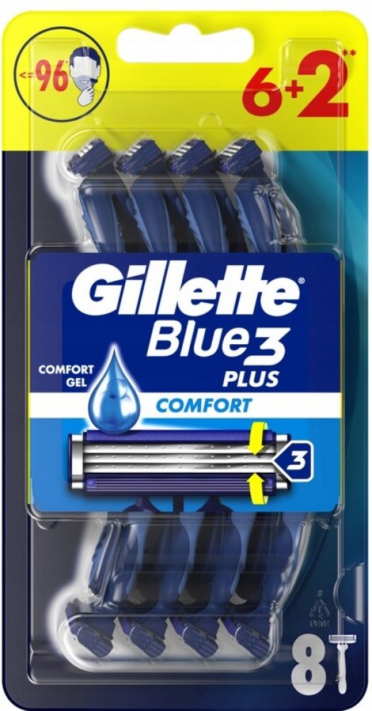Gillette Blue3 je světově nejprodávanější jednorázový holící strojek se 3 břity. Tyto holící strojky pro muže jsou vybaveny břity citlivými k pokožce a technologií ComfortGel, která se aktivuje při kontaktu s vodou a nabízí hladší oholení*. Užijte si snadno oplachovatelné břity, které umožňují 2x lepší čištění*. Jednorázové holicí strojky se zvlhčujícím páskem jsou navrženy s flexibilní hlavou, která se přizpůsobí konturám obličeje a usnadňuje holení těžko přístupných míst. Jednorázový holící strojek zvládne až 12 pohodlných oholení. Ergonomická rukojeť: rukojeť z protiskluzové pryže pro snadné uchopení a ovládání je nyní vyrobena z 50 % z recyklovaných materiálů.