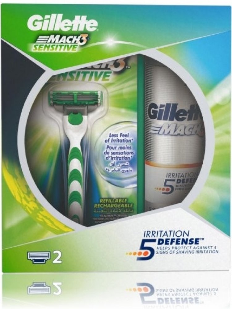 Gillette Mach 3 Sensitive + pěna na holení 250 ml dárková sada