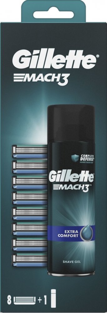 Výhodná sada GILLETTE Mach3 8 ks + Gel obsahuje 8 náhradních hlavic pro strojek Mach3 a zklidňující gel na holení. Náhradní hlavice pro váš strojek GILLETTE Mach3 vám zajistí hladké a dokonalé oholení bez podráždění. Hlavice GILLETTE jsou vybaveny třemi břity a zvlhčujícím páskem, který pokožku zvláčňuje a zabraňuje tak jejímu zarudnutí, a navíc vás svým vyblednutím upozorní na fakt, že už je na čase vyměnit hlavici za novou. Povrch holící hlavice GILLETTE Mach3 s mikrolamely napomáhá napínat pokožku při holení a zajišťuje tak dosažení toho nejlepšího vzhledu každý den. Deset ochranných mikrolamel napíná pokožku a připravuje vousy k oholení, čímž se snižuje podráždění. Extra ochranu proti podráždění nabízí gel na holení, který pokožku zároveň zklidňuje a pomáhá předcházet drobným poraněním. Navíc dodá vaší pleti příjemný pocit svěžesti. Zklidňující gel na holení pro muže Gillette Mach3 Extra Comfort pečuje o citlivou mužskou pleť. Vytváří bohatou pěnu, která pomáhá udržovat vlhkost pleti....
