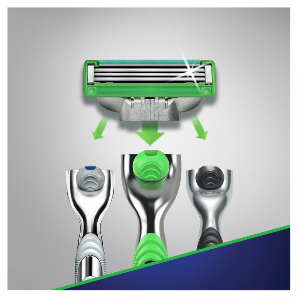 - všechny holicí hlavice Mach3 lze použít ke všem rukojetím Mach3