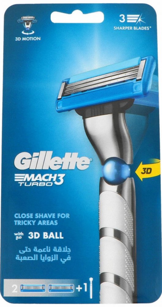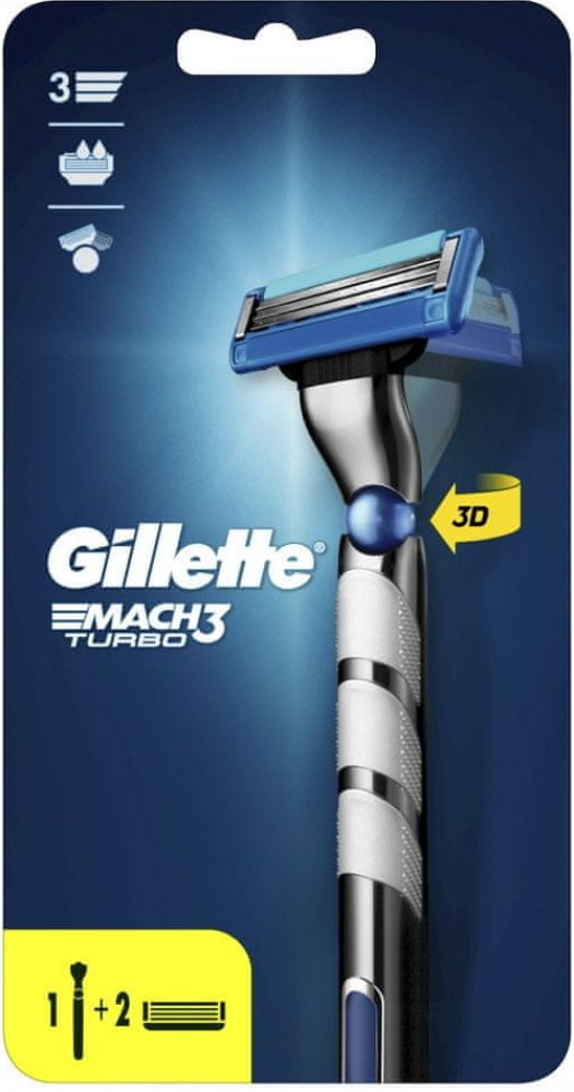 GILLETTE Mach3 Turbo 3D strojek + 2 náhradní hlavice
