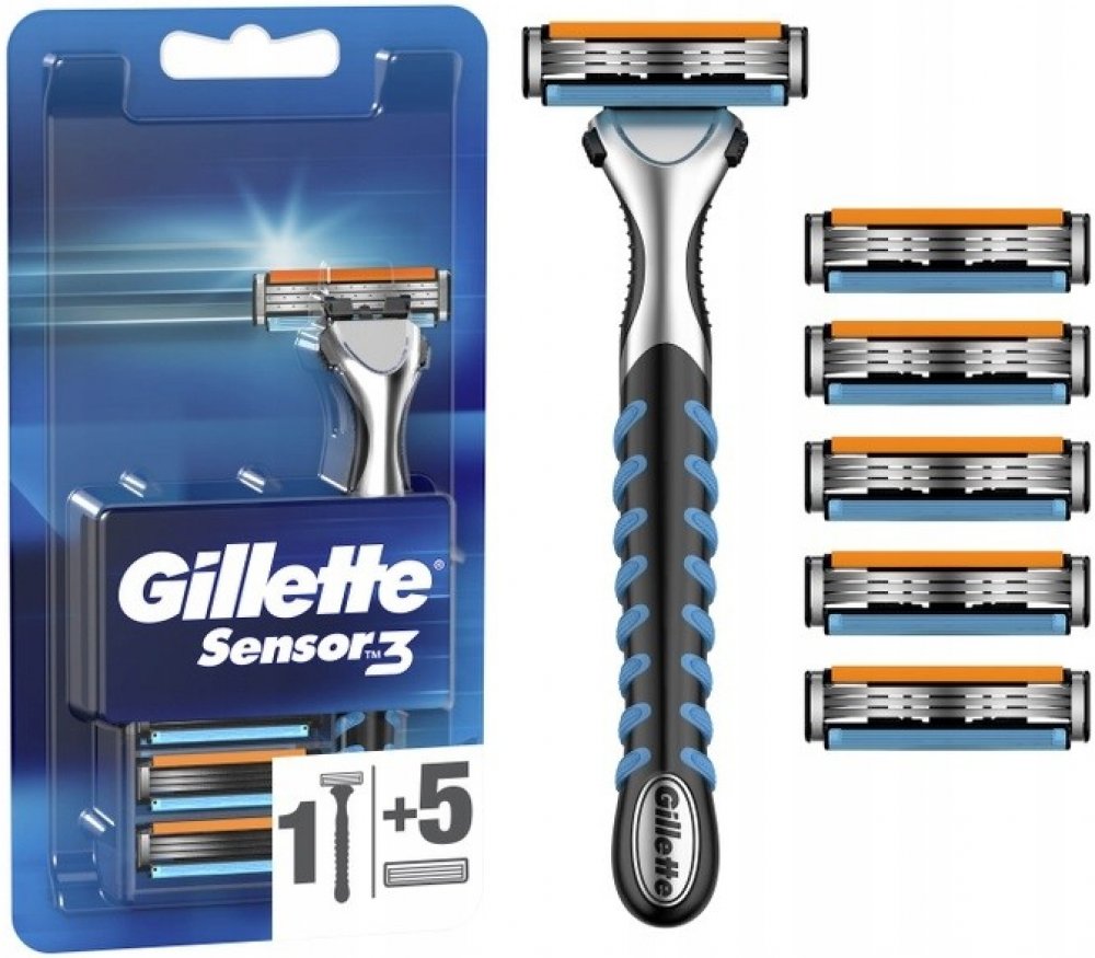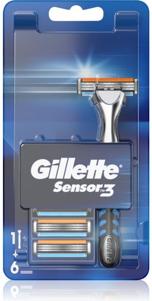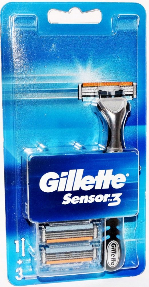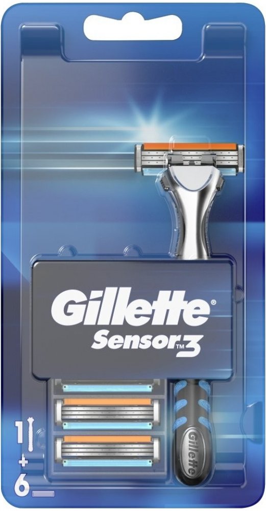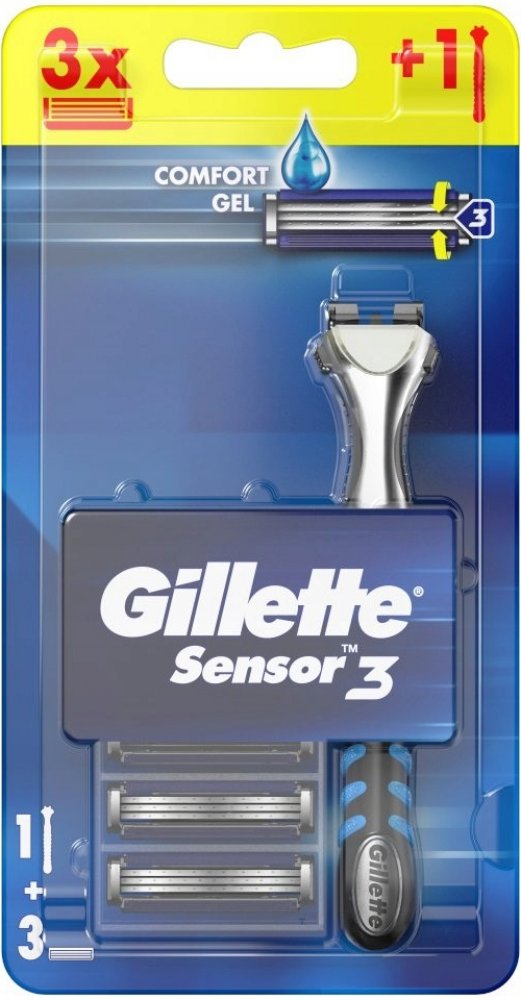 Holicí strojek Gillette Sensor3 má tři břity a zvlhčující pásek, díky kterému snadno klouže po pokožce. Strojek se snadno přizpůsobuje konturám obličeje pro pohodlné a hladké oholení.