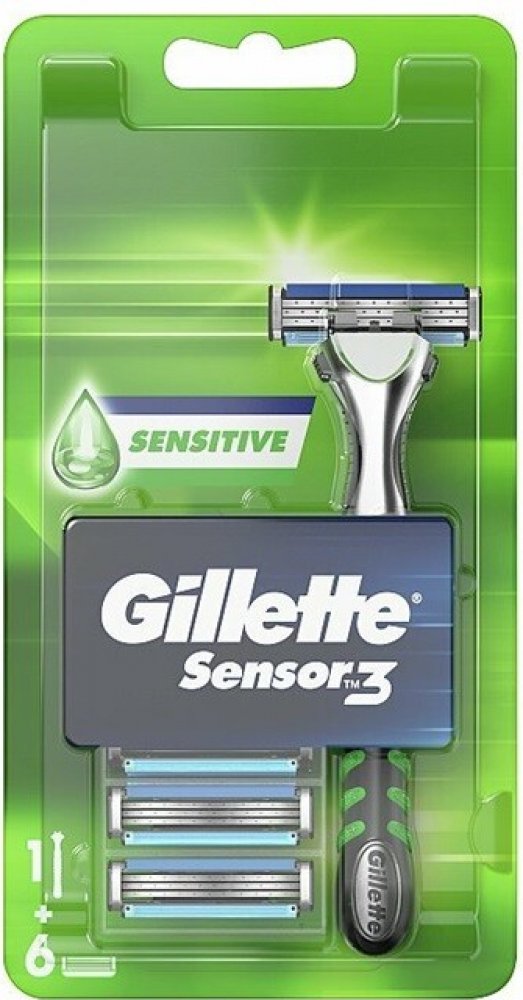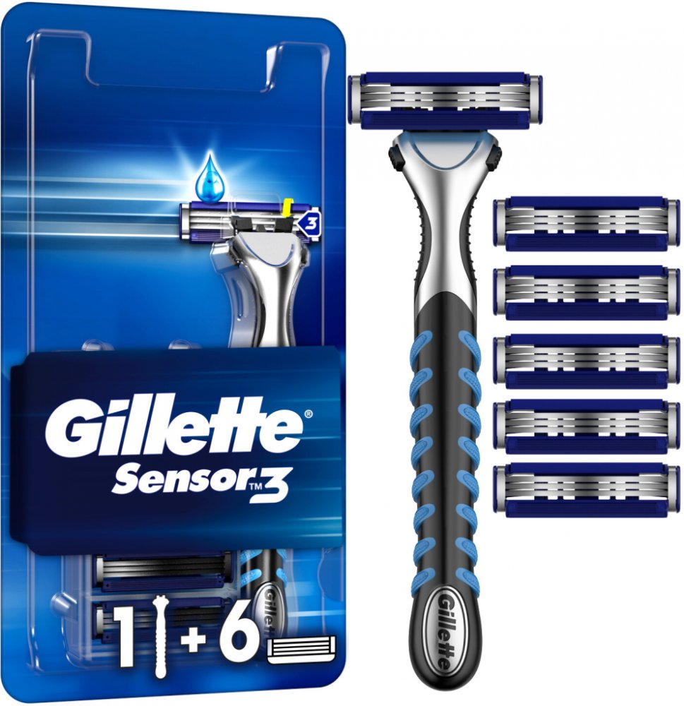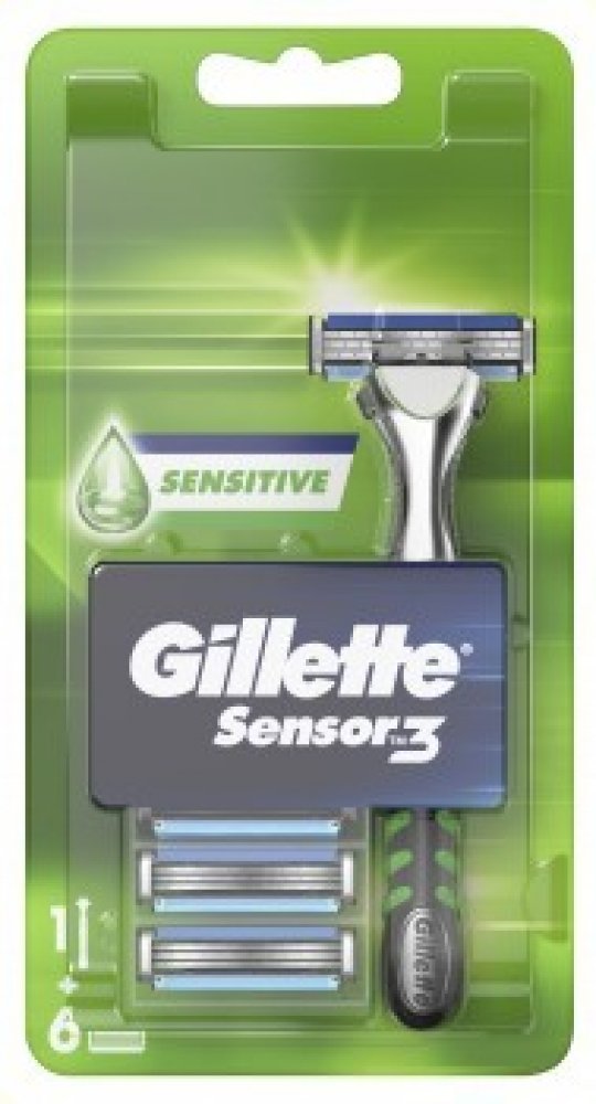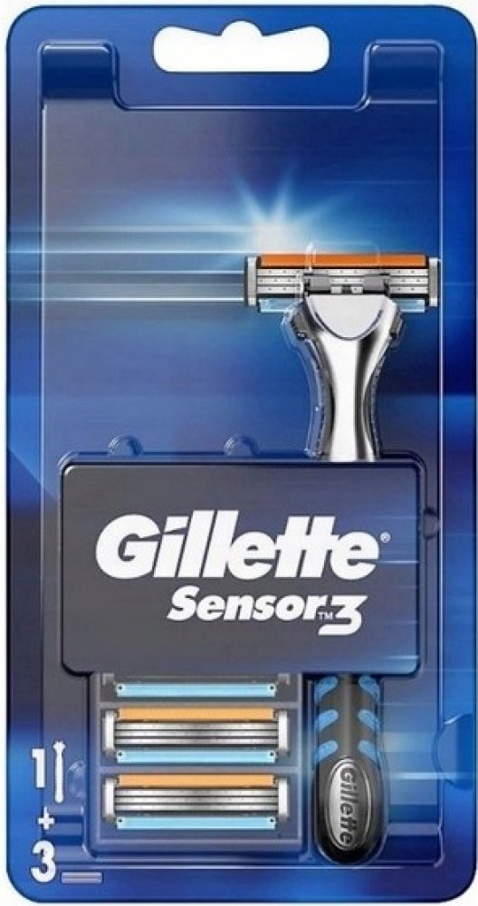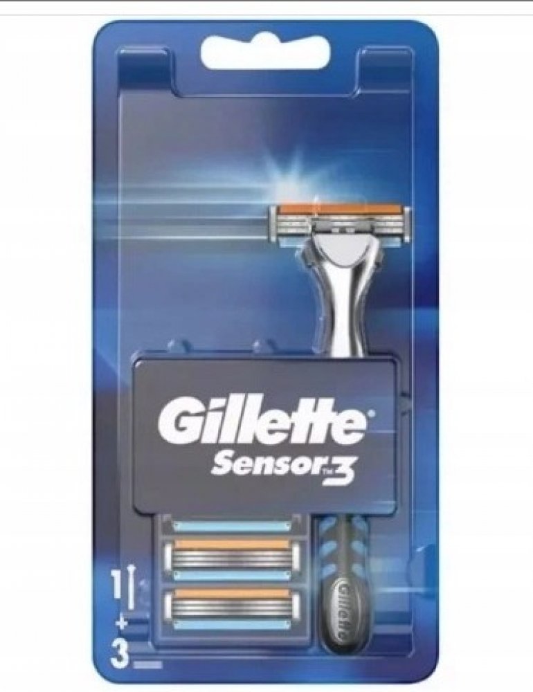 Holicí strojek Gillette Sensor3 má tři břity a zvlhčující pásek, díky kterému snadno klouže po pokožce. Strojek se snadno přizpůsobuje konturám obličeje pro pohodlné a hladké oholení.