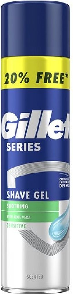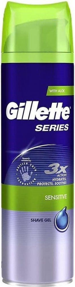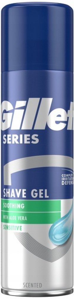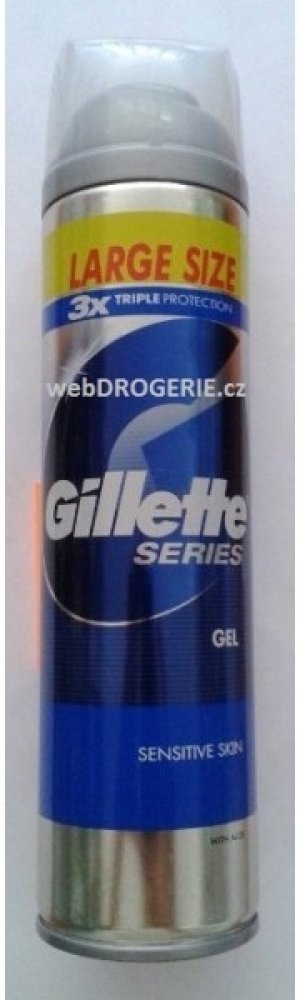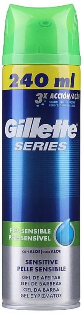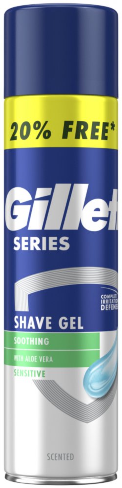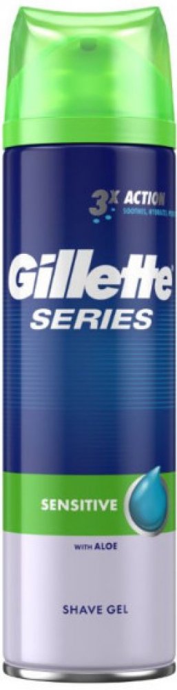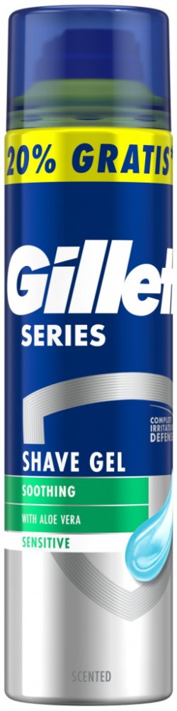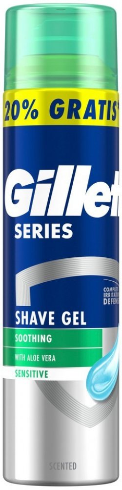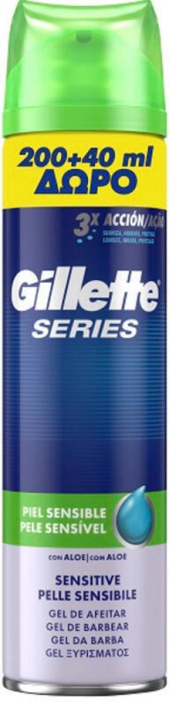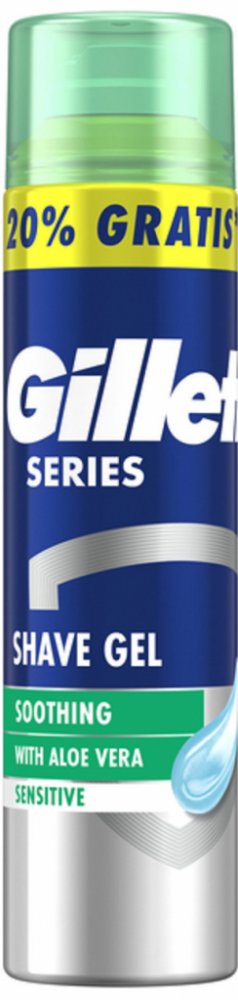 Popis produktu Pánský gel na holení pro citlivou pokožku ve 200 + 40 ml zdarma. Obsahuje speciální složení s přídavkem aloe vera pro extra péči o vaši pokožku, která je holením namáhána a zároveň zajišťuje snadnější skluz holicího strojku pro snadné oholení. Series Gel na holení pro citlivou pokožku 200 + 40 ml značky Gillette. Pro extra péči o vaši pokožku, která je holením namáhána. Dokonale usnadňuje skluz strojku pro přesné, hladké pohodlné oholení a dodává ochranu a komfort, který potřebuje Vaše pokožka pro zdravý vzhled. Nastříkejte do dlaně malé množství gelu, jemně napěňte na navlhčené pokožce a oholte. Získejte s gelem na holení Gillette Series Sensitive Skin neuvěřitelně hladké oholení. Jeho složení Triple Protection se třemi účinnými zvlhčujícími složkami zlepšuje skluz holicího strojku a chrání pokožku před poraněním, zarudnutím a napjatostí. Toto lehce parfémované složení s aloe nabízí neuvěřitelně hladké a šetrné oholení. Vyvinuto pomocí vědecké technologie Gillette Shaving Science™ Gel na holení Gillette Series Sensitive Skin využívá ochranného a zklidňujícího účinku aloe. Vysoce účinné zvláčňující a zvlhčující látky, jako je např. glycerin a silika, hydratují pokožku a zlepšují skluz holicího strojku - pro hladké a pohodlné oholení.