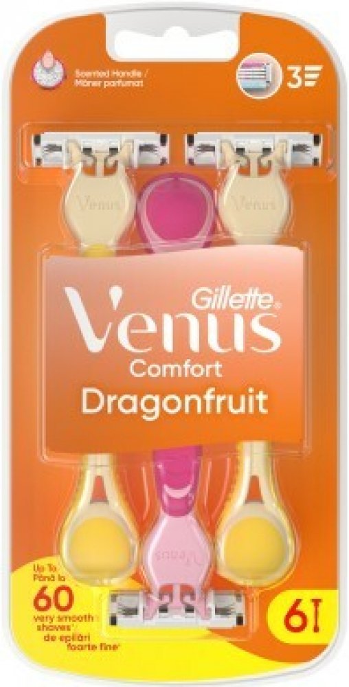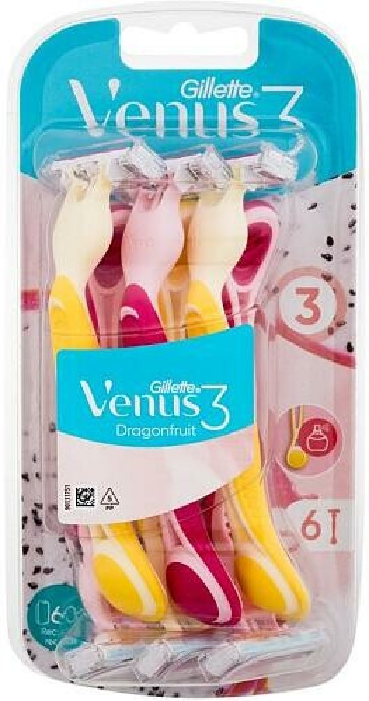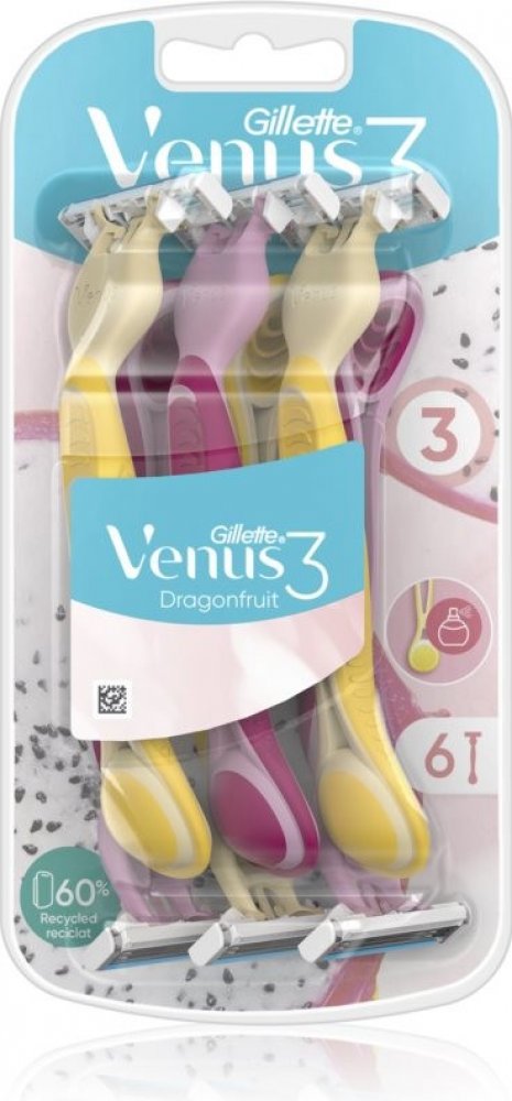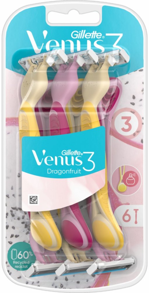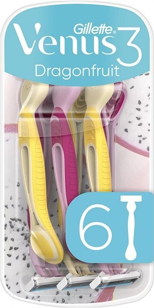 Dámská pohotová holítka Gillette Venus 3 Dragonfruit zajišťují hladké oholení za skvělou cenu. Tato dámská pohotová holítka mají 3 břity kopírující křivky těla a zaoblenou výkyvnou hlavici, která reaguje i na nejjemnější změny kontur těla. Tato holítka mají zvlhčující pásek, který se aktivuje při kontaktu s vodou a zajišťuje plynule hladký skluz po pokožce. Zvlhčující pásek také obsahuje vitamin E. Tato dámská pohotová holítka jsou dostupná s rukojeťmi v různých barvách a s vůní dračího ovoce, aby vaše holení dostalo svěží tropický náboj.