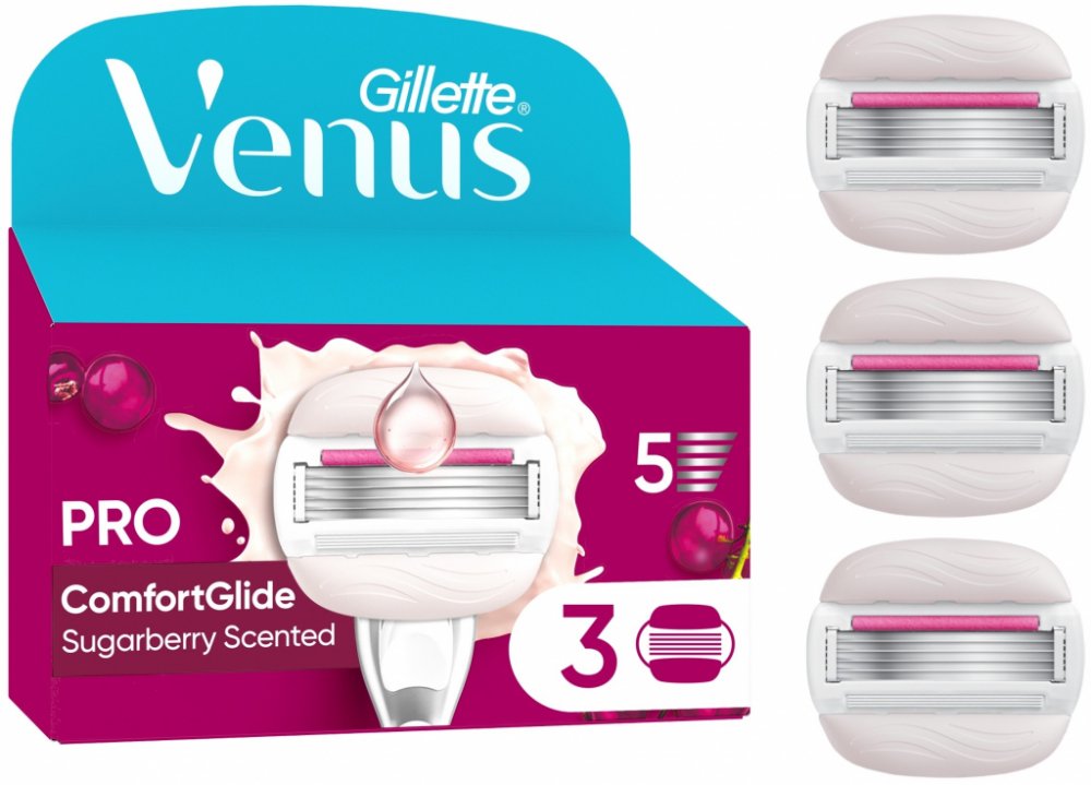 Gillette Venus ComfortGlide Sugarberry čepele pro ženy, 3 náplně