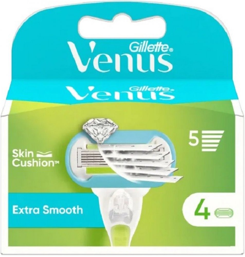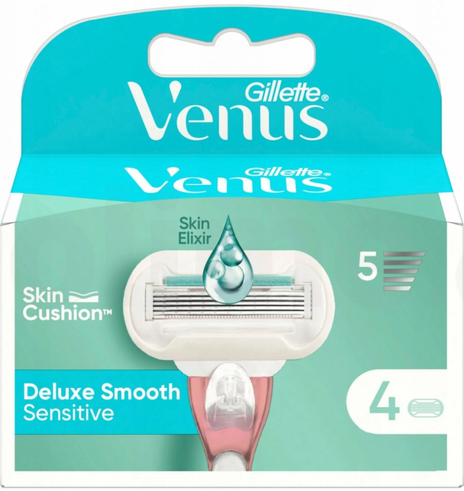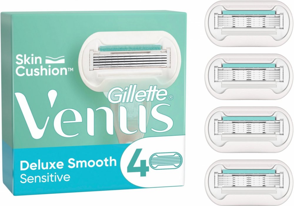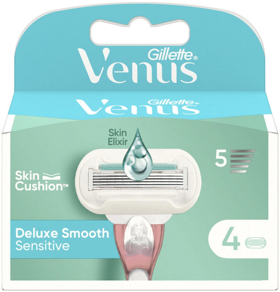 Náhradní holicí hlavice Extra Smooth Sensitive do dámského holicího strojku poskytnou díky 5 extra tenkým čepelkám podobným diamantu dokonale hladké a vůči pokožce šetrné oholení. Holicí hlavice obsahují lubrikační pásek SkinElixir, který dokonale chrání pokožku před pořezáním a ulehčuje skluz strojku po pokožce. S Gillette Venus Extra Smooth Sensitive dámským holicím strojkem zažijete hladké a důkladné oholení bez podráždění už při prvním tahu. Balení obsahuje 4 ks náhradních hlavic.