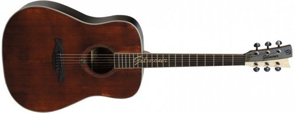 Gilmour Antique W48Gilmour Antique W48 je akustická kytara typu dreadnought s širším krkem (nultý pražec má šířku 48 mm). Konstrukce nástroje je polomasivní a nabízí přední desku z AA výběrového masivního smrku sitka. To zaručuje kvalitní a velice vyrovnaný zvuk ve všech frekvencích. Zadní deska, luby a krk jsou z mahagonu. Krk je doplněn palisandrovým hmatníkem s 20 pražci. Nultý kostěný pražec n...