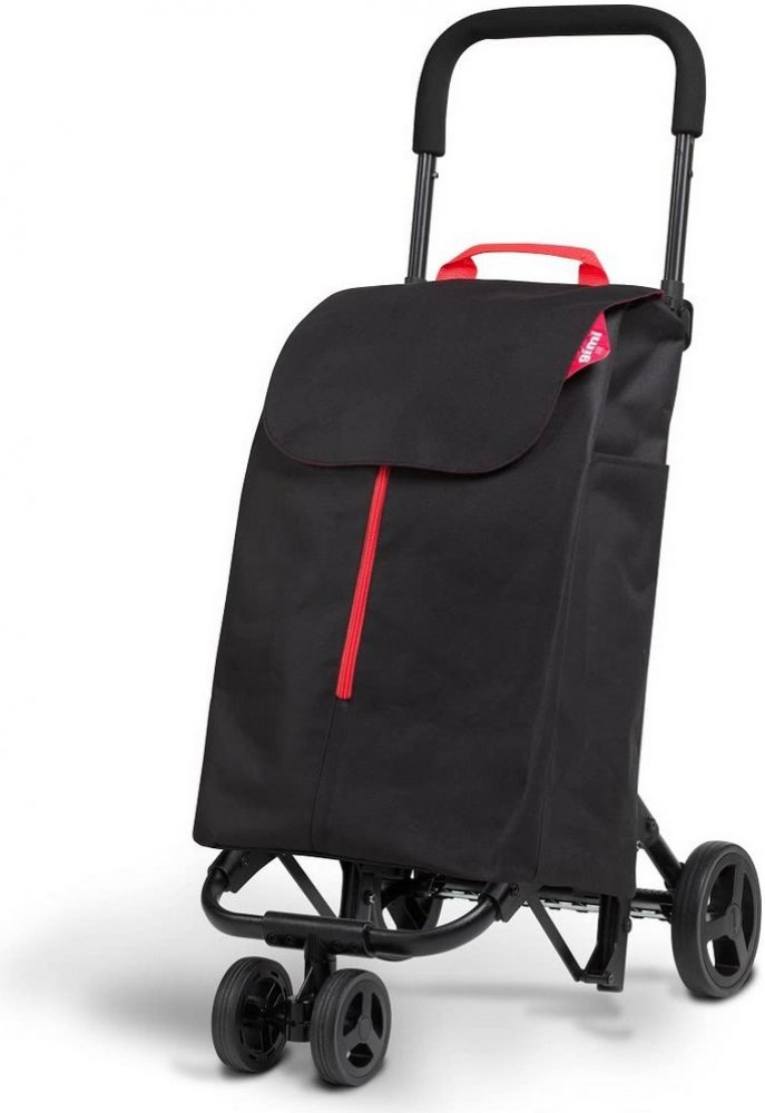 2+2 kolečka nákupního vozíku pro všestranné použití: ideální pro tlačení nebo táhnutí podle potřeby.