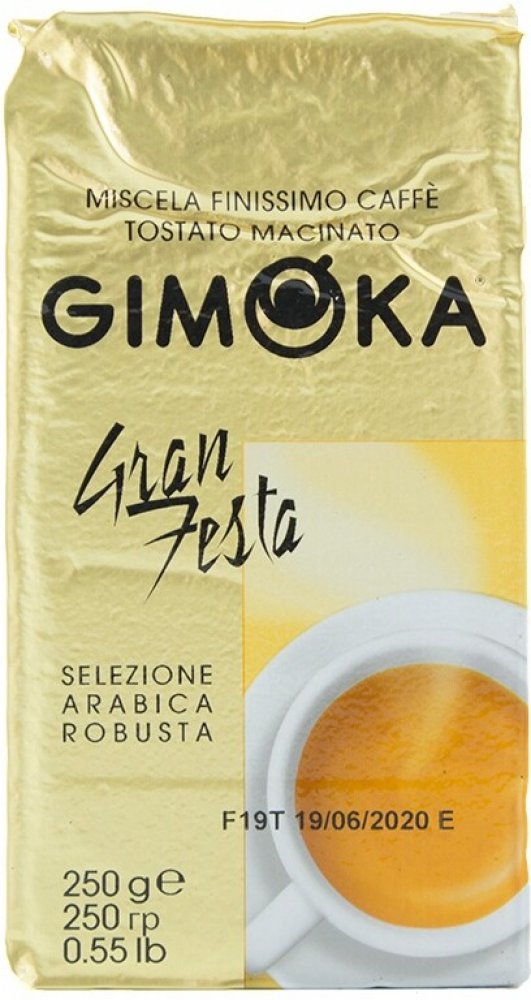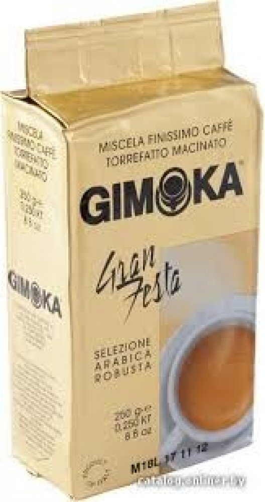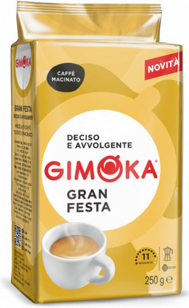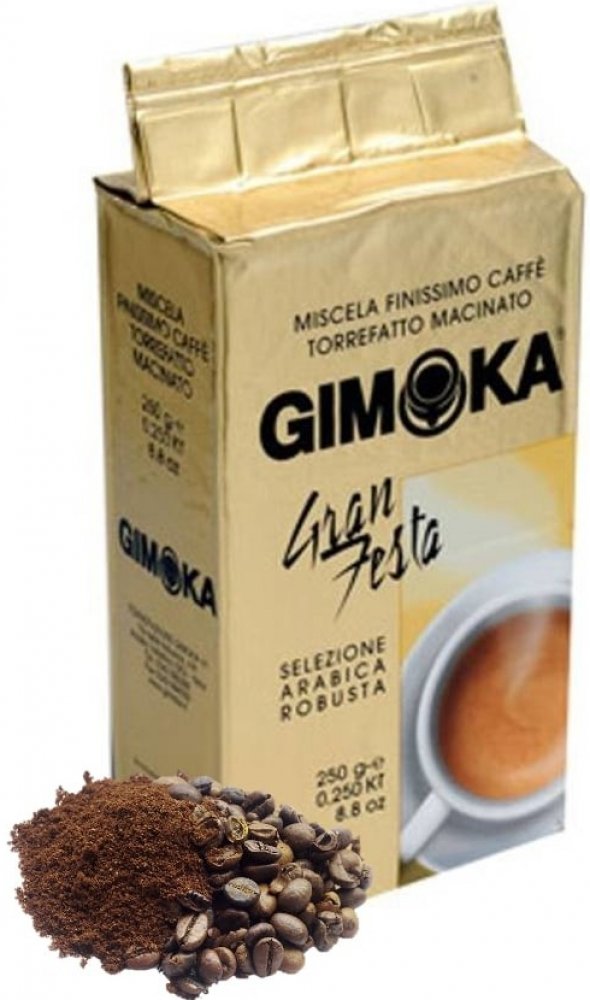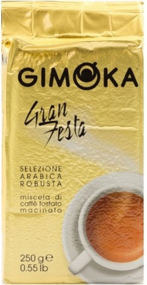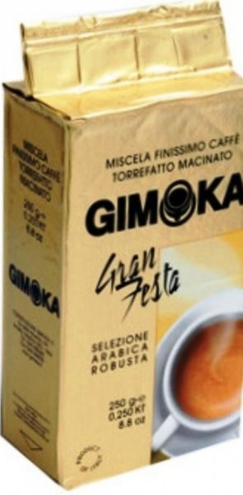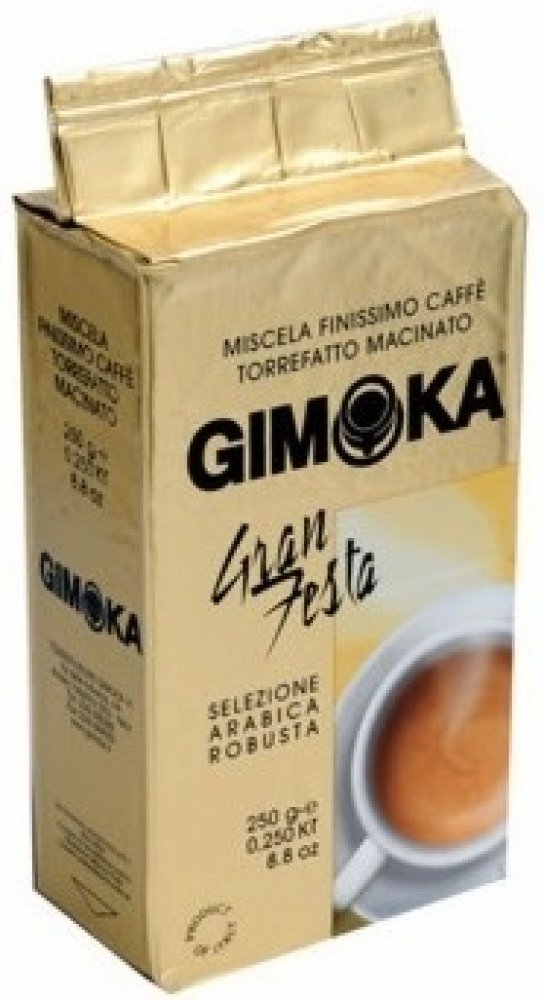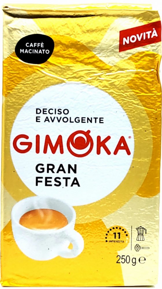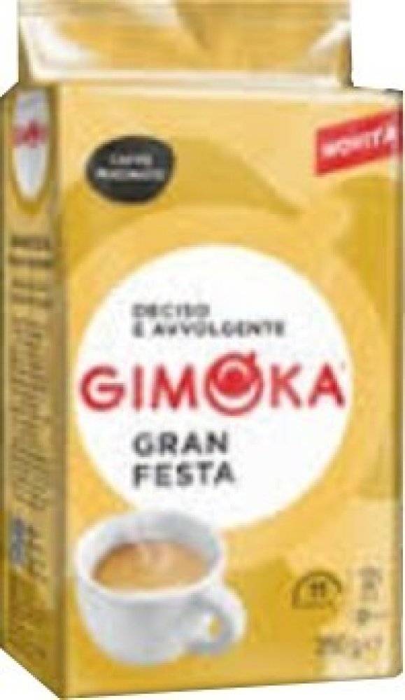 Gimoka Gran Festa, balená ve vakuu, je středně silná káva s jemnou ořechovou chutí a bohatou cremou. Směs obsahuje 30 % Arabiky a 70 % Robusty.