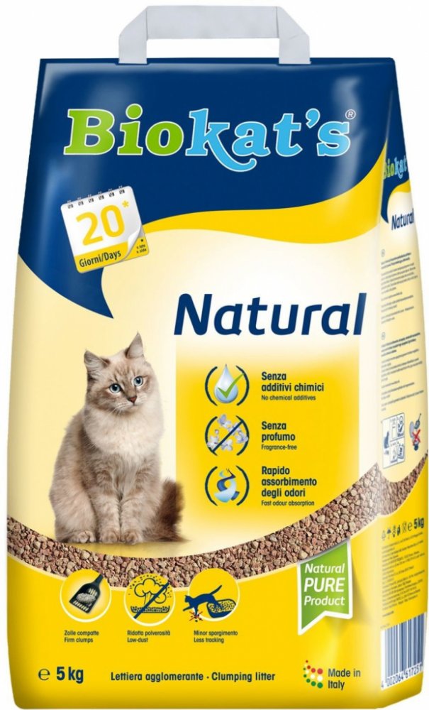 Podestýlka pro kočky od značky Biokat’s je středně hrubá, světlé barvy a nelepí se na srst, takže je vhodná i pro dlouhosrstá zvířata. Biokat’s Natural z přírodního jílu potěší hygieničností a bezprašností. Stelivo s vysokou hrudkovatostí odstraní zápach z kočičí toalety na dlouhou dobu.