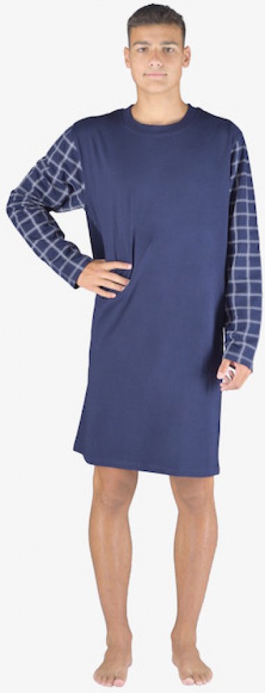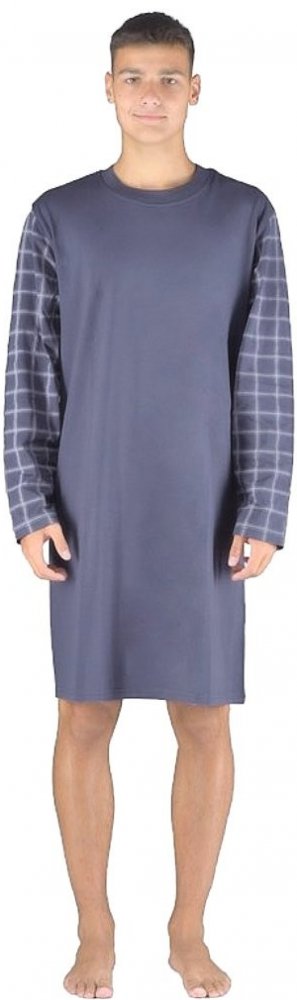 Doporučujeme luxusní bavlněnou pánskou noční košili s dlouhým rukávem. Moderní jednobarevné prádlo s atraktivním káro potiskem na rukávech. Elegantní oblečení vám poskytne jedinečné pohodlí během spánku.