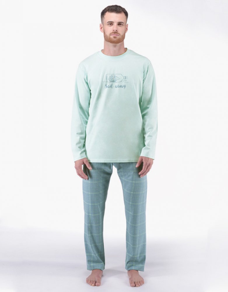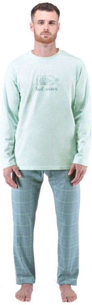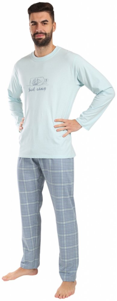 Pánské klasické pyžamo volného střihu z jemného úpletu Vám poskytne pohodlí během spánku. Kalhoty s oblíbeným vzorem káro doplňuje triko s dlouhými rukávy a větším potiskem na hrudi. Odplouvejte každý večer do říše snů.Materiál: Prosíme, perte při 40 °C a žehlete na nízkou teplotu (stupeň 1). Nebělte, chemicky nečistěte ani nesušte v bubnové sušičce.