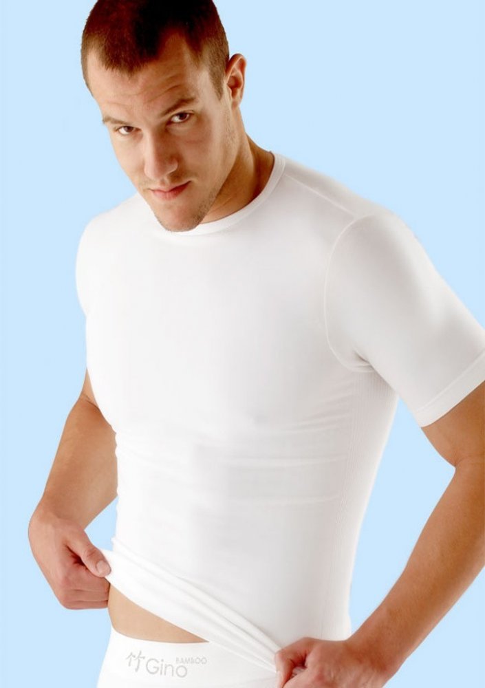 Pánské tričko s krátkým rukávem a velkým obsahem bambusového vlákna značky GINA. Tričko je vyrobeno z velmi jemného vlákna v poměru: 60% bamboo 25% bavlna 5% polyamid 10% elastan. Díky tomuto složení je tričko výjimečně jemné, v pase neškrtí a má také velmi dobré hygienické vlastnosti. Bambusové vlákno je známo svými antibakteriálními a antistatickými vlastnostmi. Výrobky z bambusového vlákna umí velmi dobře absorbovat vlhkost a dobře vyrovnávat teplotní rozdíly. Vlákno má také velmi dobré termoregulační vlastnosti. Spodní prádlo s bambusovým vláknem je velmi vhodné také pro sportovní použití, ale stejně tak i pro běžné denní nošení.