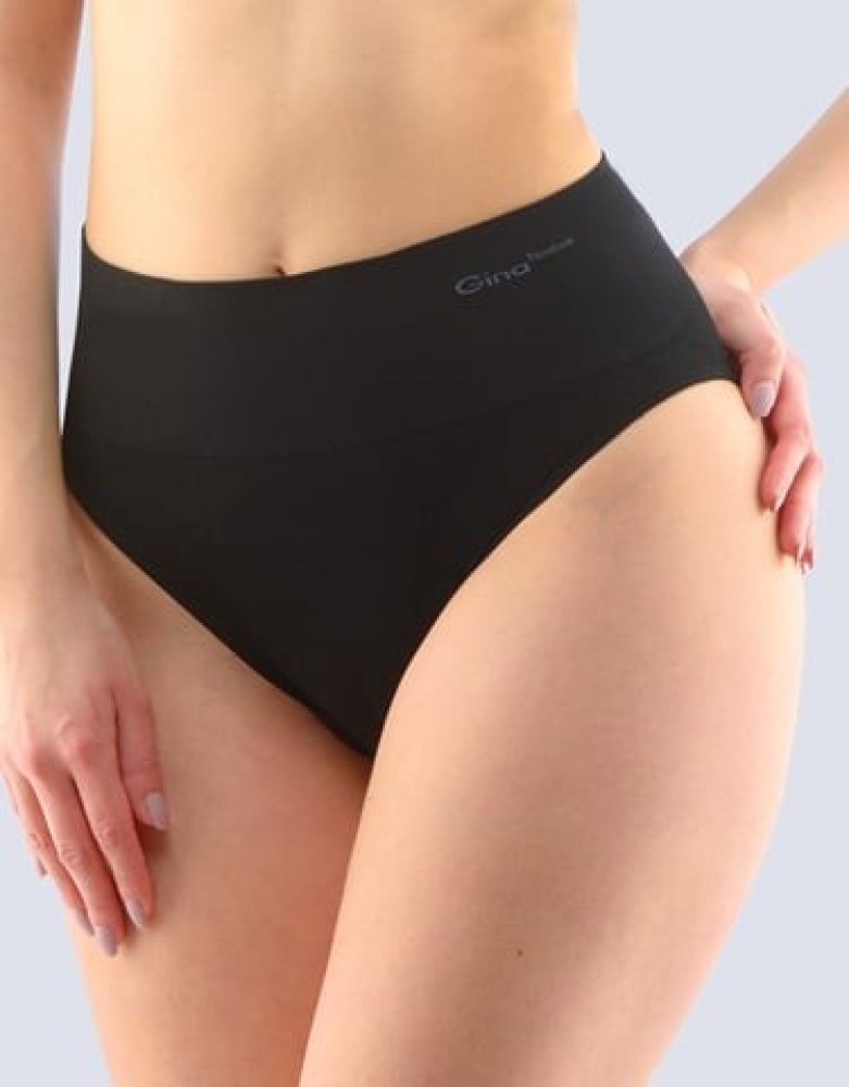 kalhotky klasické se širokým bokem, širší bok, bezešvé, jednobarevné značky GINA, kód 00035. Barva: černá , Velikost: L/XL,