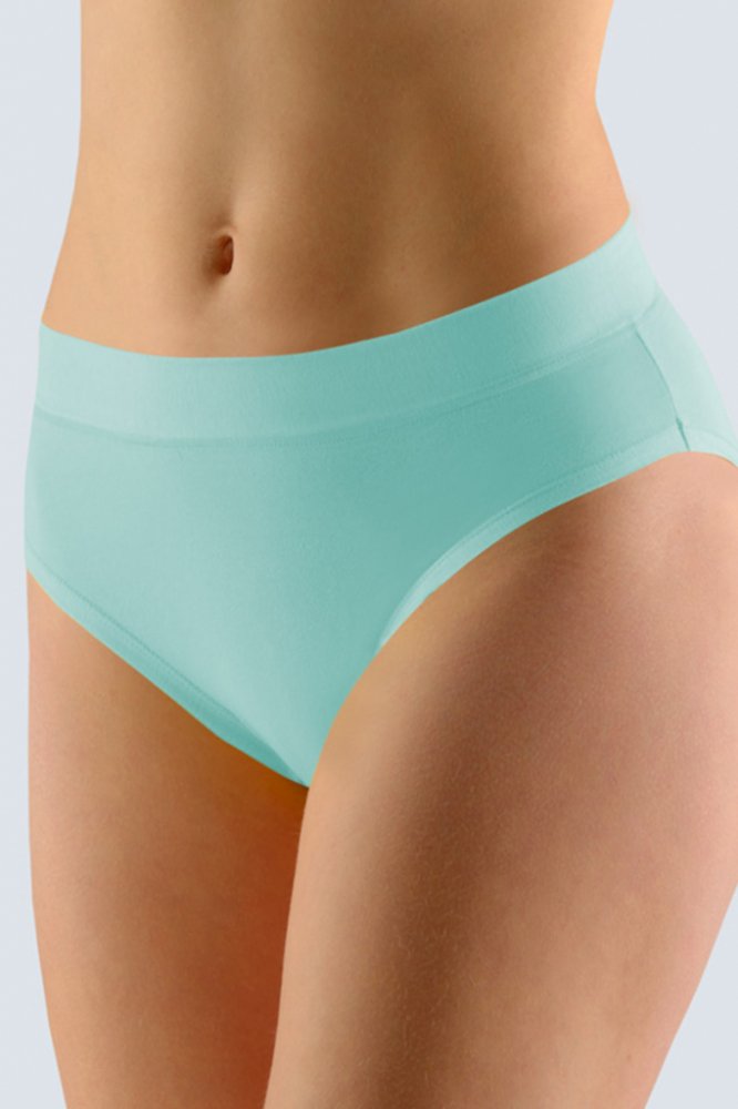 Kalhotky klasického střihu se širším pasovým lemem, dámské šité prádlo. Pasový kraj je začištěný širším lemem ze stejného materiálu. Nohavičky jsou začištěné úzkým lemem ze stejného materiálu. Kalhotky jsou jednobarevné. Materiál je vyroben z bavlny, která je doplněna elastanem. Úplet je vhodný pro všechny, kteří hledají přírodní materiály. Elastan přidává materiálu pružnost a zlepšuje jeho tvarovou stálost. Prádlo z tohoto materiálu je vhodné pro každodenní nošení.