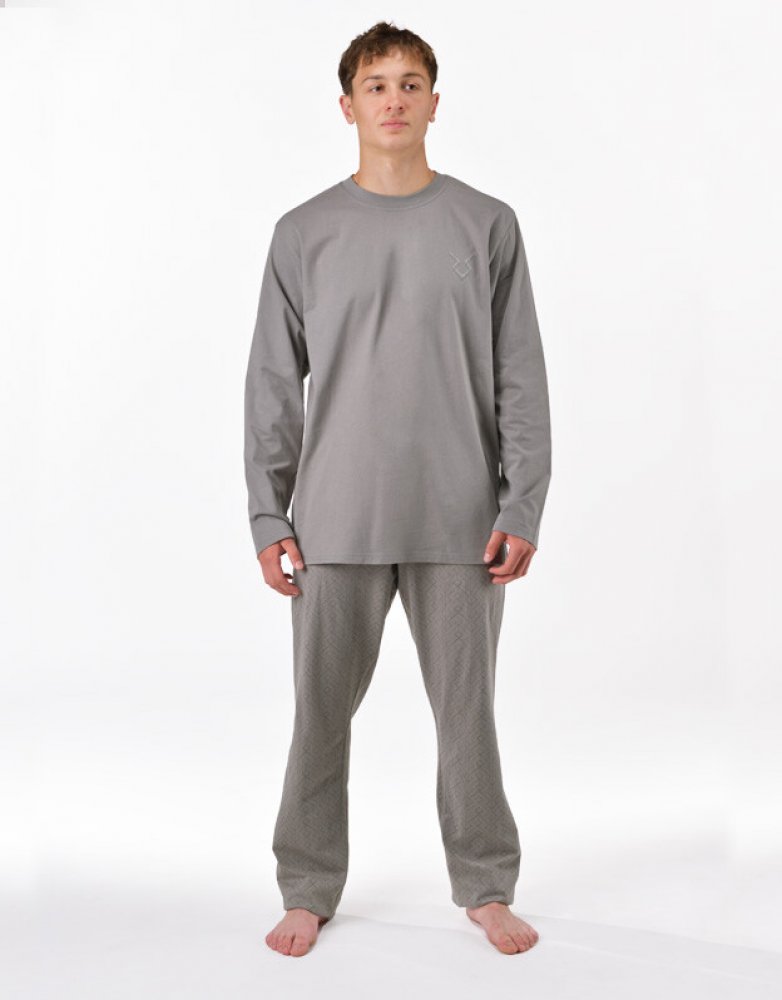 Gina pánské pyžamo dlouhé pánské, šité, s potiskem Pyžama 2025 79195P šedá peprmint